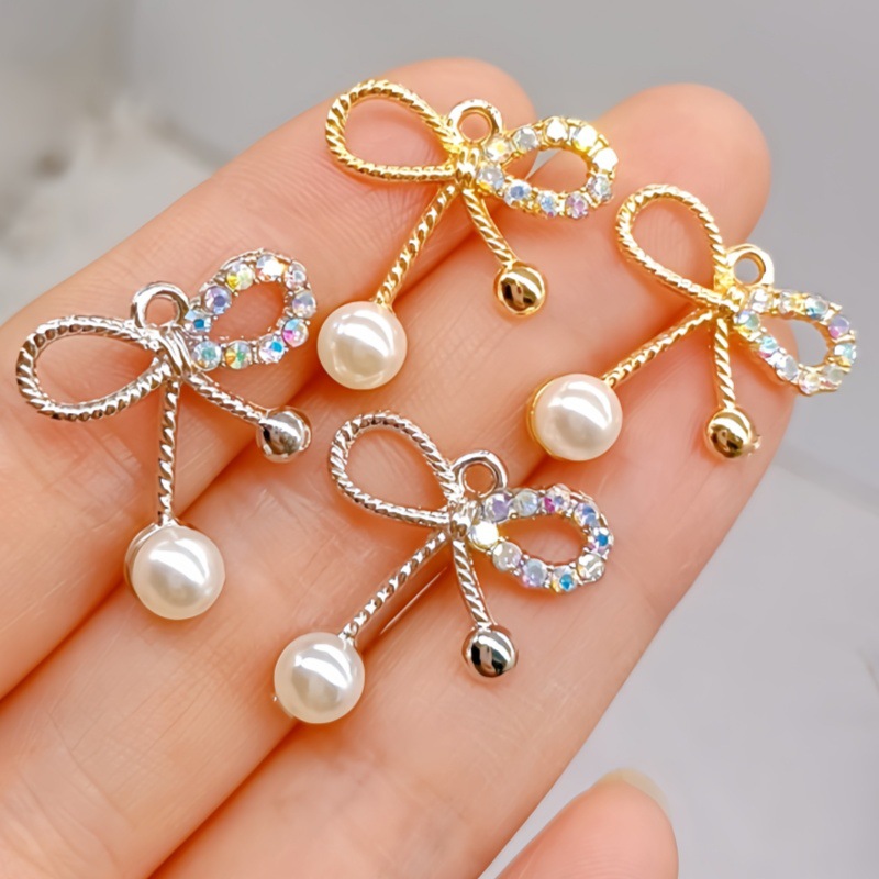新款韩版简约气质蝴蝶结领结水钻珍珠耳饰配件DIY饰品手链配件