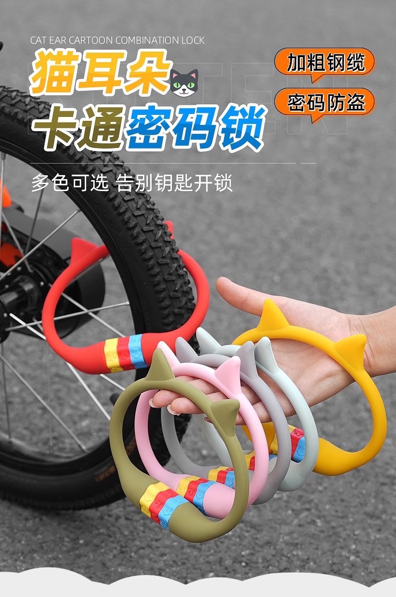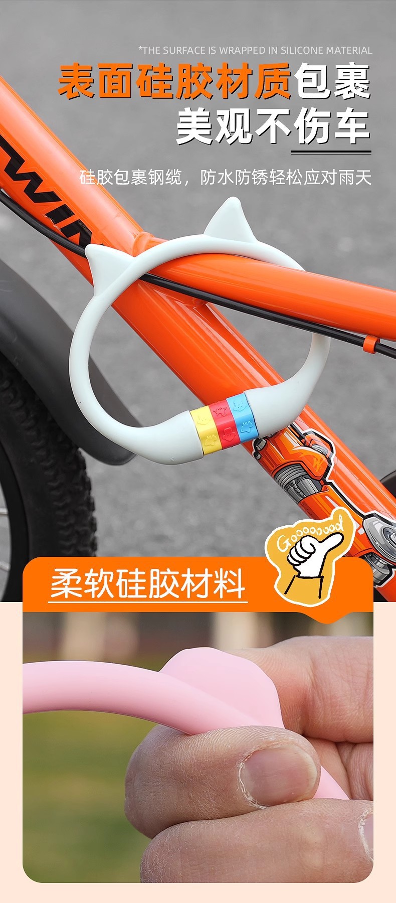 自行车锁儿童小猫防盗密码锁公路山地车卡通便携单车锁配件大全
