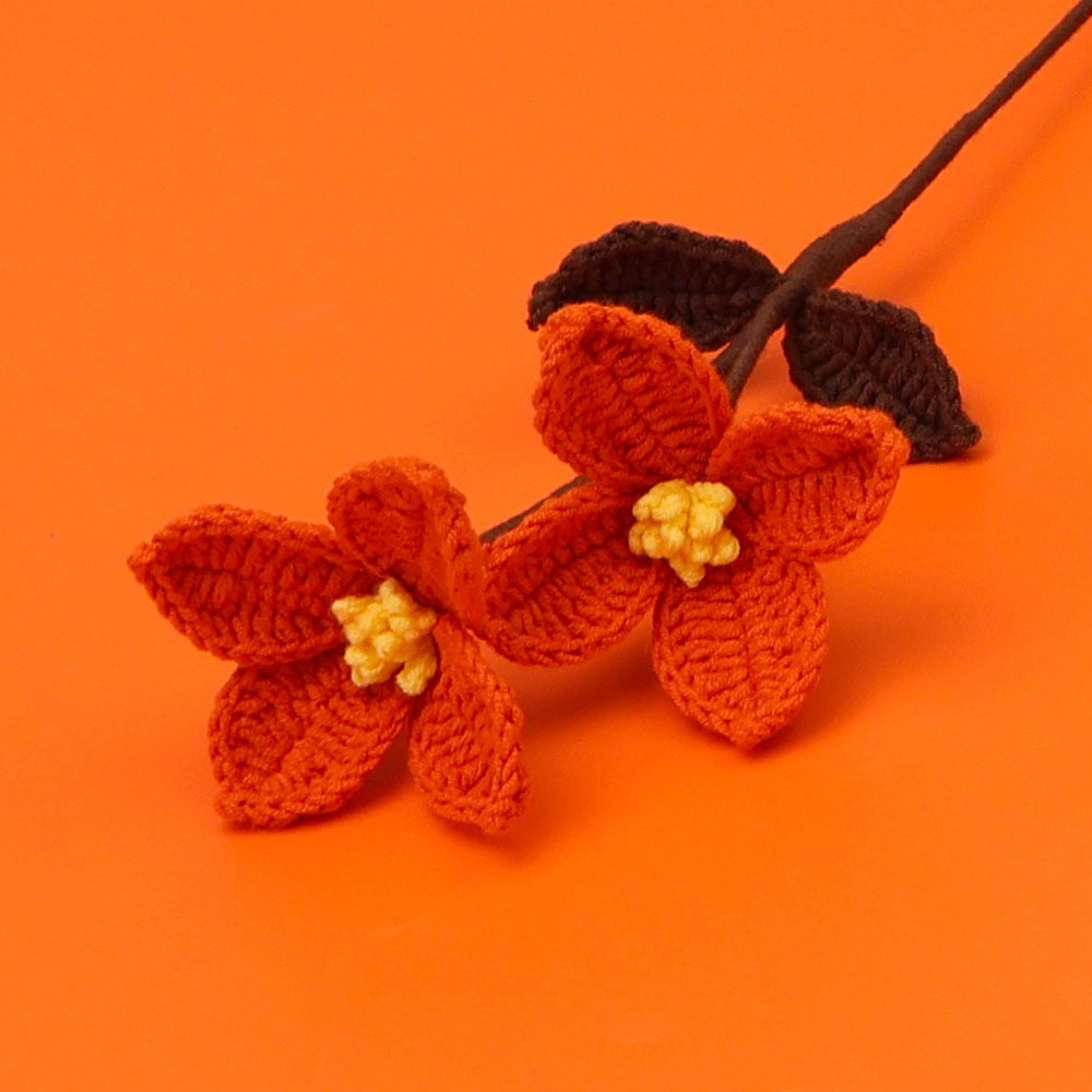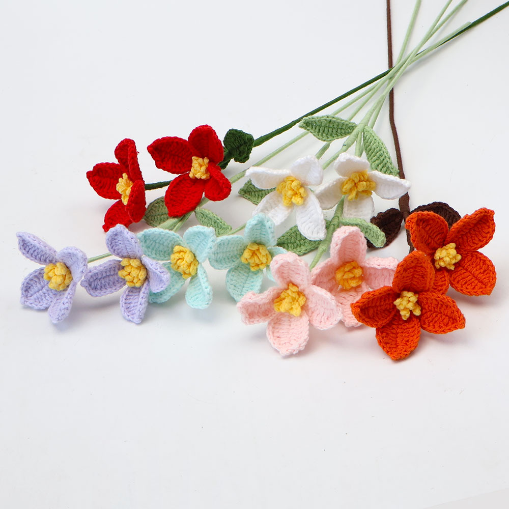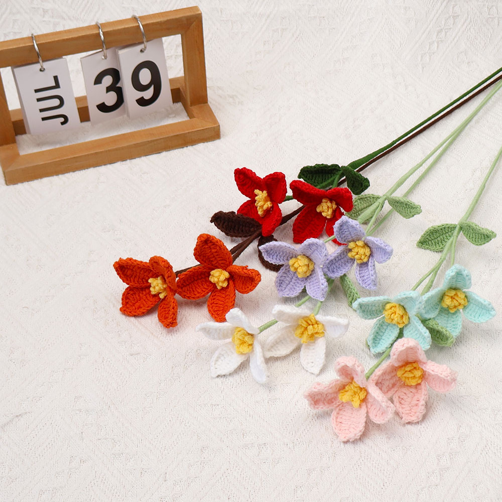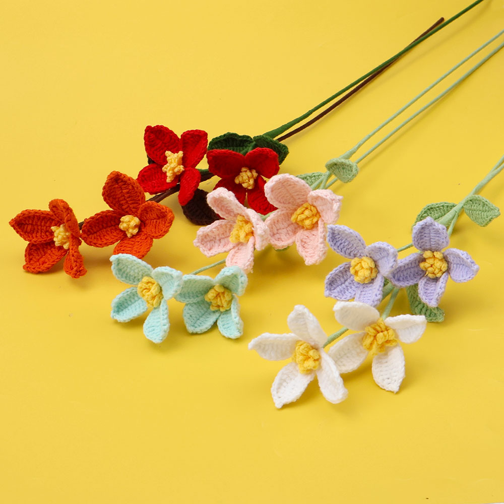 成品跨境手工花毛线钩织编织石斛兰花七夕节情人节礼物仿真花批发