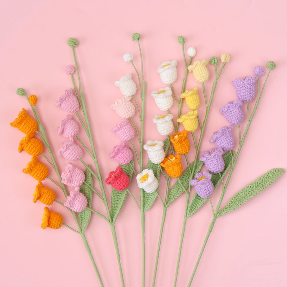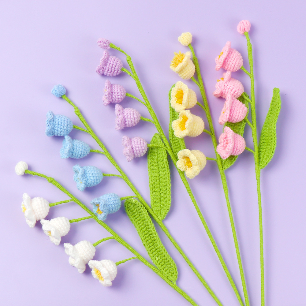 钩织铃兰成品手工毛线永生花束渐变仿真花创意编织萌四铃兰花礼物