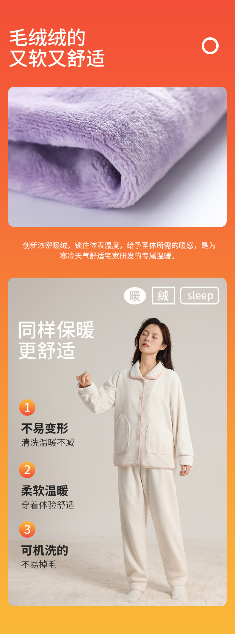德绒秋冬款保暖翻领睡衣珊瑚绒开衫简约可外穿家居服男女情侣套装