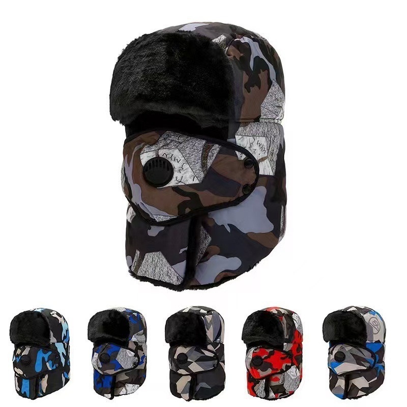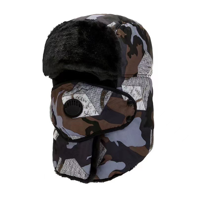 跨境冬季男士帽迷彩雷锋帽中老年户外防寒骑行护脸加绒保暖帽棉帽