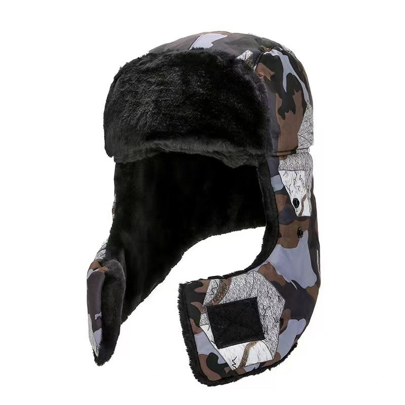 迷彩雷鋒帽冬の男性の屋外釣りとベルベットは保温保護耳防風韓国版自転車カバー帽子を厚くした