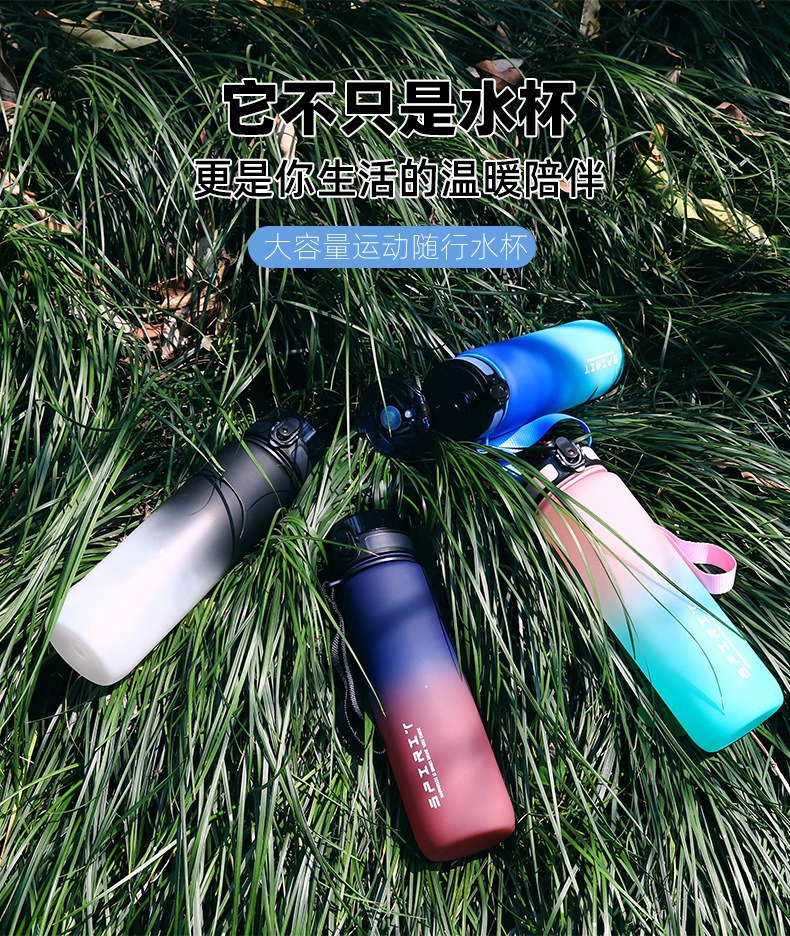大容量スポーツカップ男女学生屋外水筒高颜値フィットネス夏グラデーションフロストプラスチックカップ