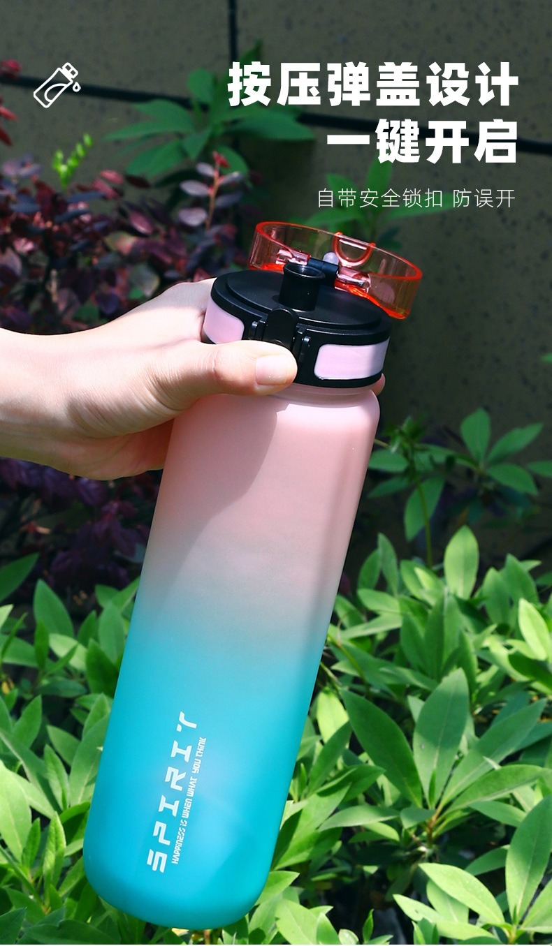 跨境大容量户外运动水杯渐变色随身高颜值塑料杯锁扣弹跳太空杯壶