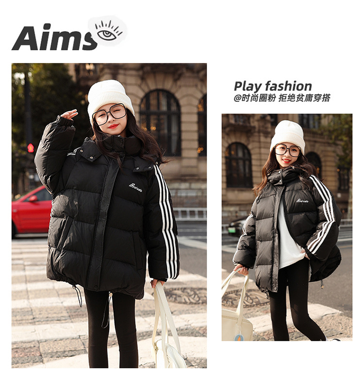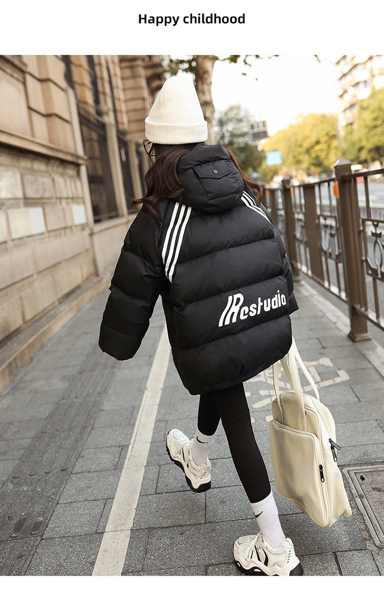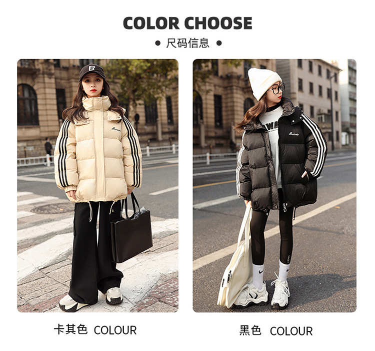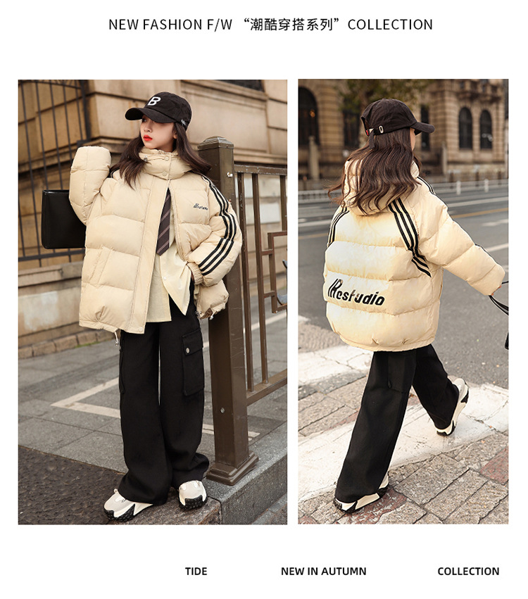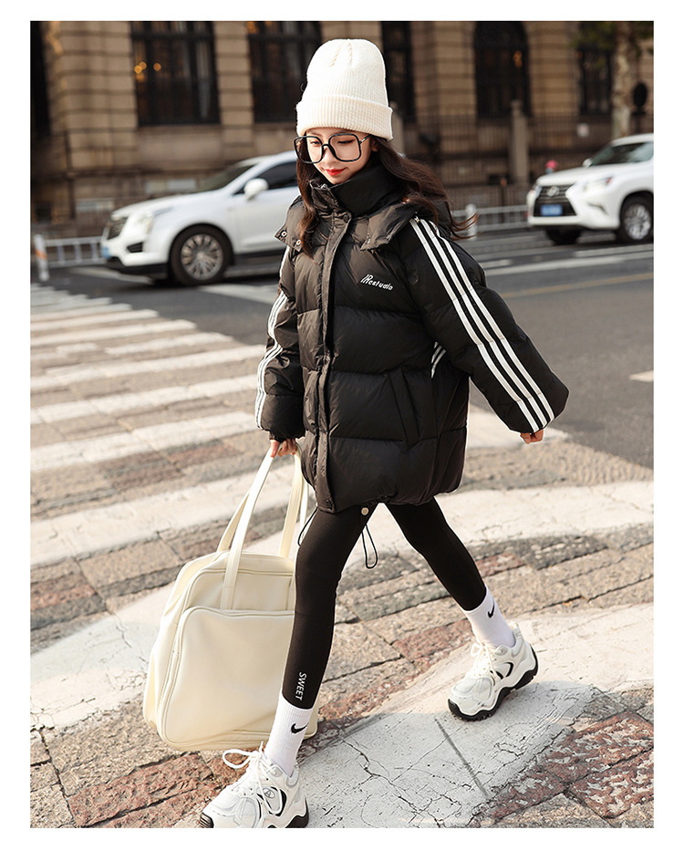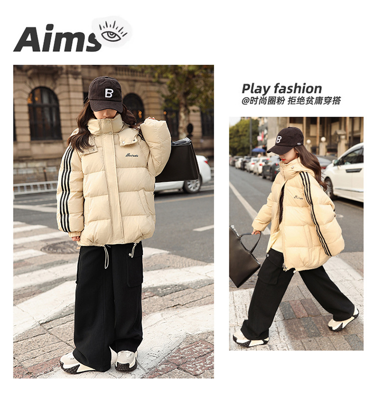 女の子用ダウンジャケット 冬 2025年新作 カジュアルジャケット ホワイトダックダウンコート 大きな女の子向け おしゃれでスタイリッシュなモデル