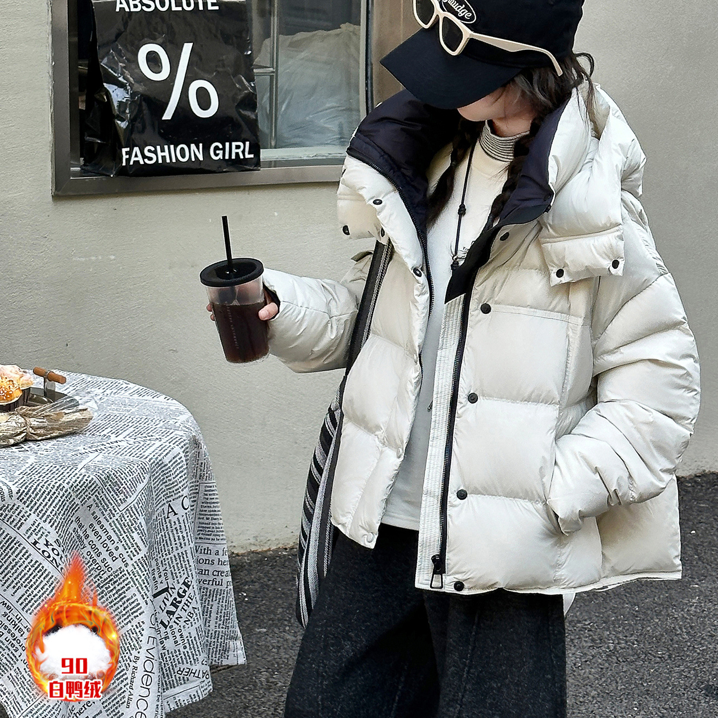 儿童加厚拼色羽绒服2025冬装新款大童洋气百搭高蓬松白鸭绒面包服