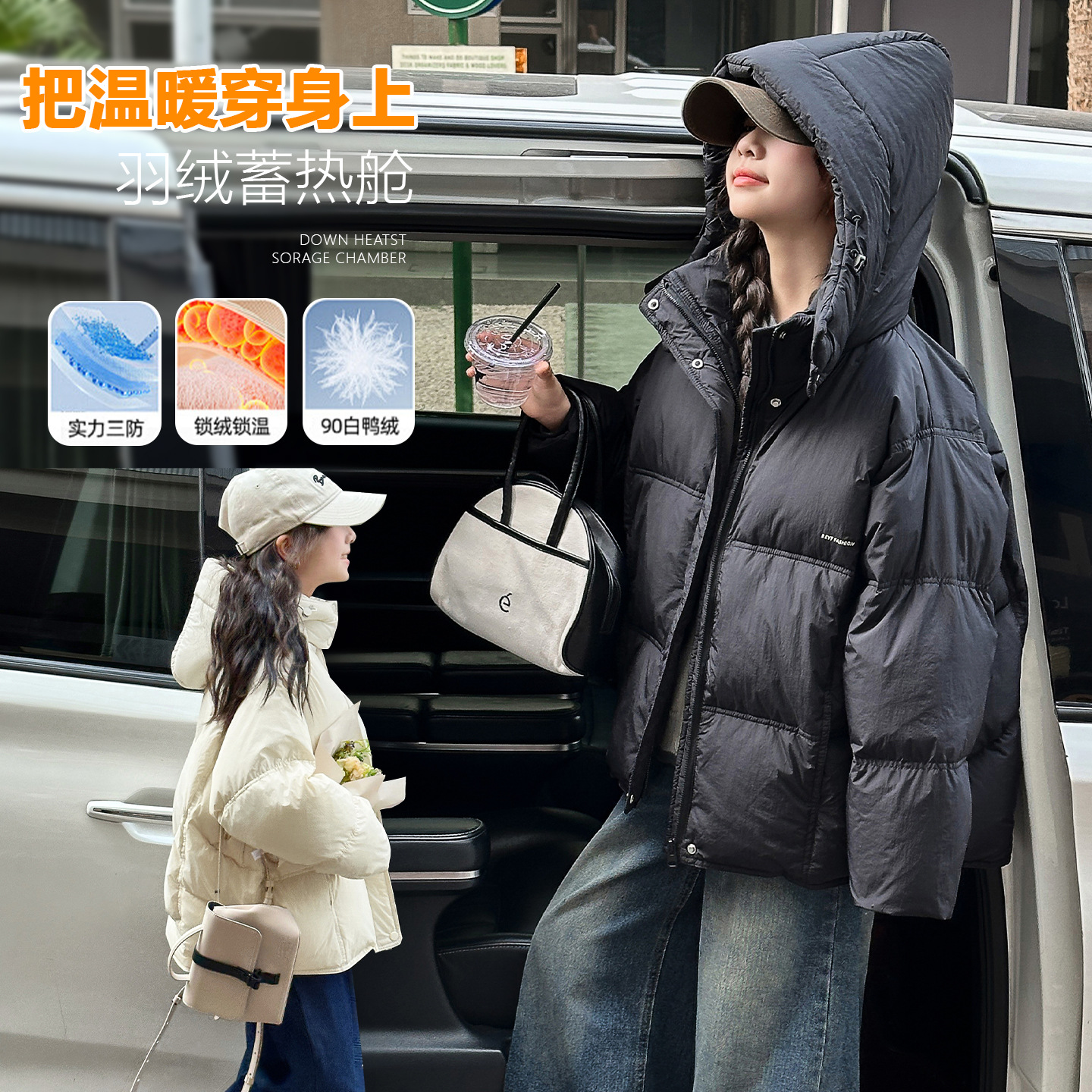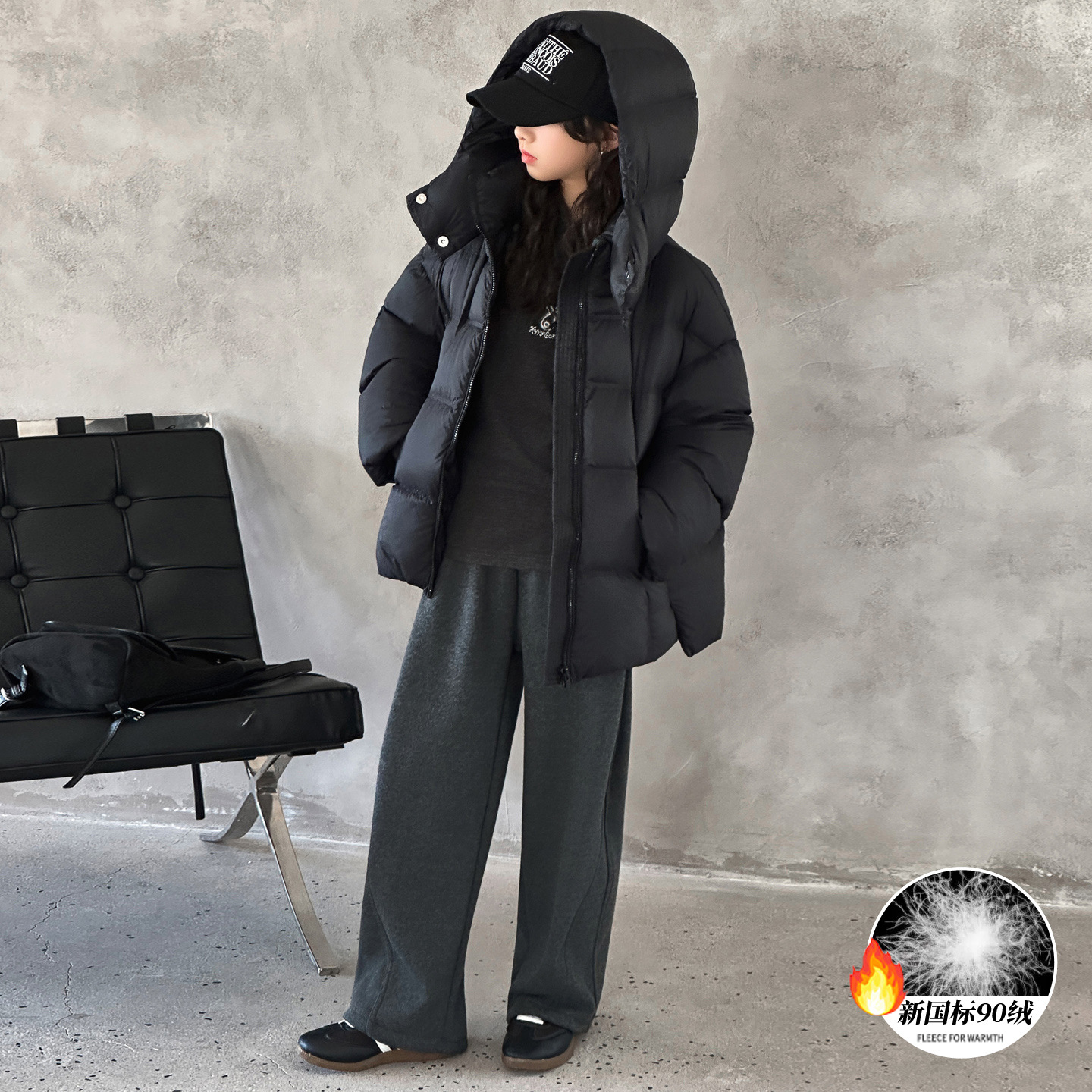 女童加厚90白鸭绒羽绒服2025冬新款大童韩版休闲连帽防寒短款外套
