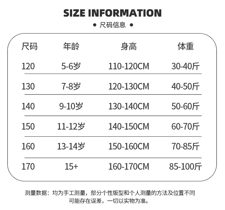 适合身高 120cm,130cm,140cm,150cm,160cm,170cm
