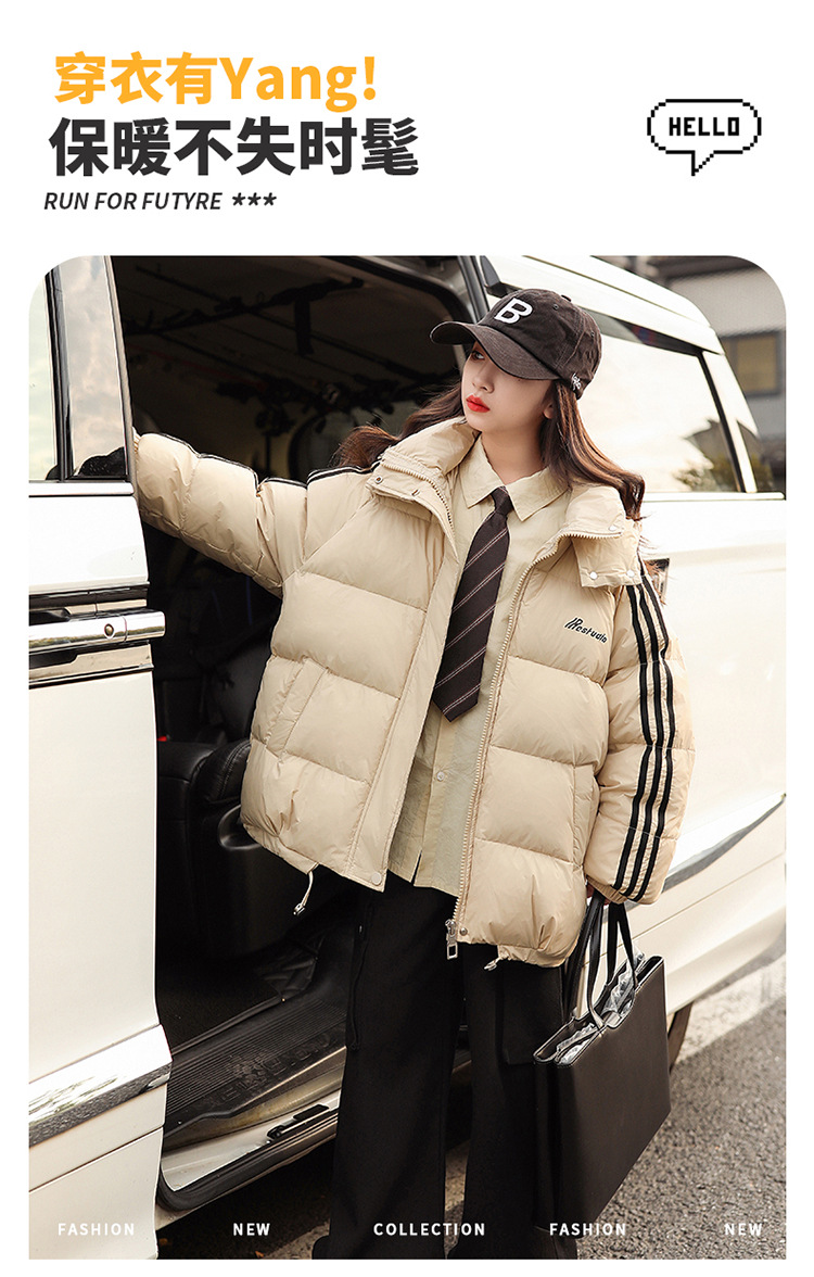 女童洋气短款纯色羽绒服2025冬装新款大童韩版休闲连帽白鸭绒外套