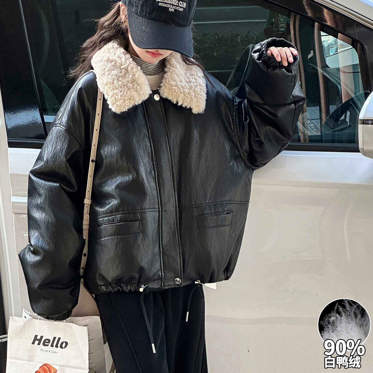 女童皮衣羽绒服2025冬装新款大童韩版洋气拆卸毛领90白鸭绒皮外套