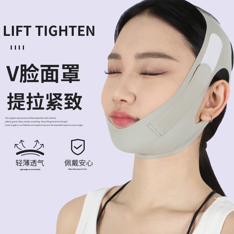 现货绷带瘦双下巴面部紧致防下垂透气睡眠面雕面罩V脸提拉挂耳式