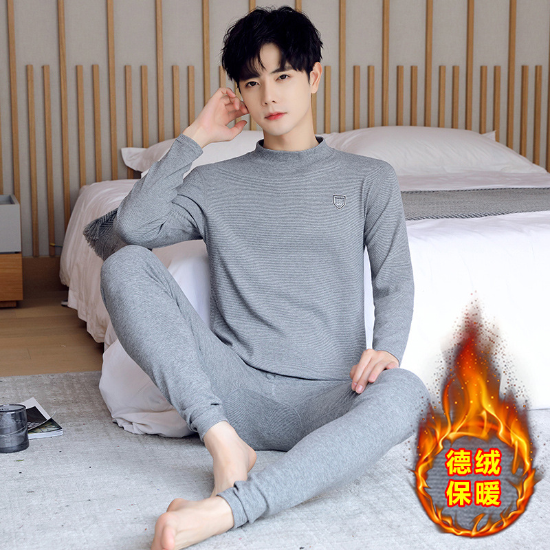 男士保暖内衣加厚加绒套装冬季中青少年御寒秋衣秋裤半高领打底衫