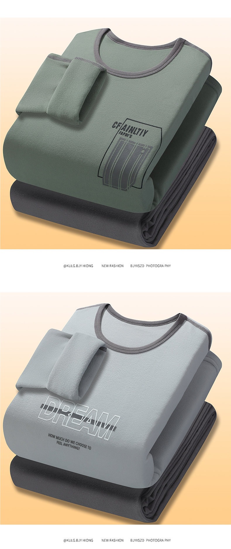 冬季青少年保暖内衣套装男加绒加厚学生真超绒圆领秋衣秋裤可外穿