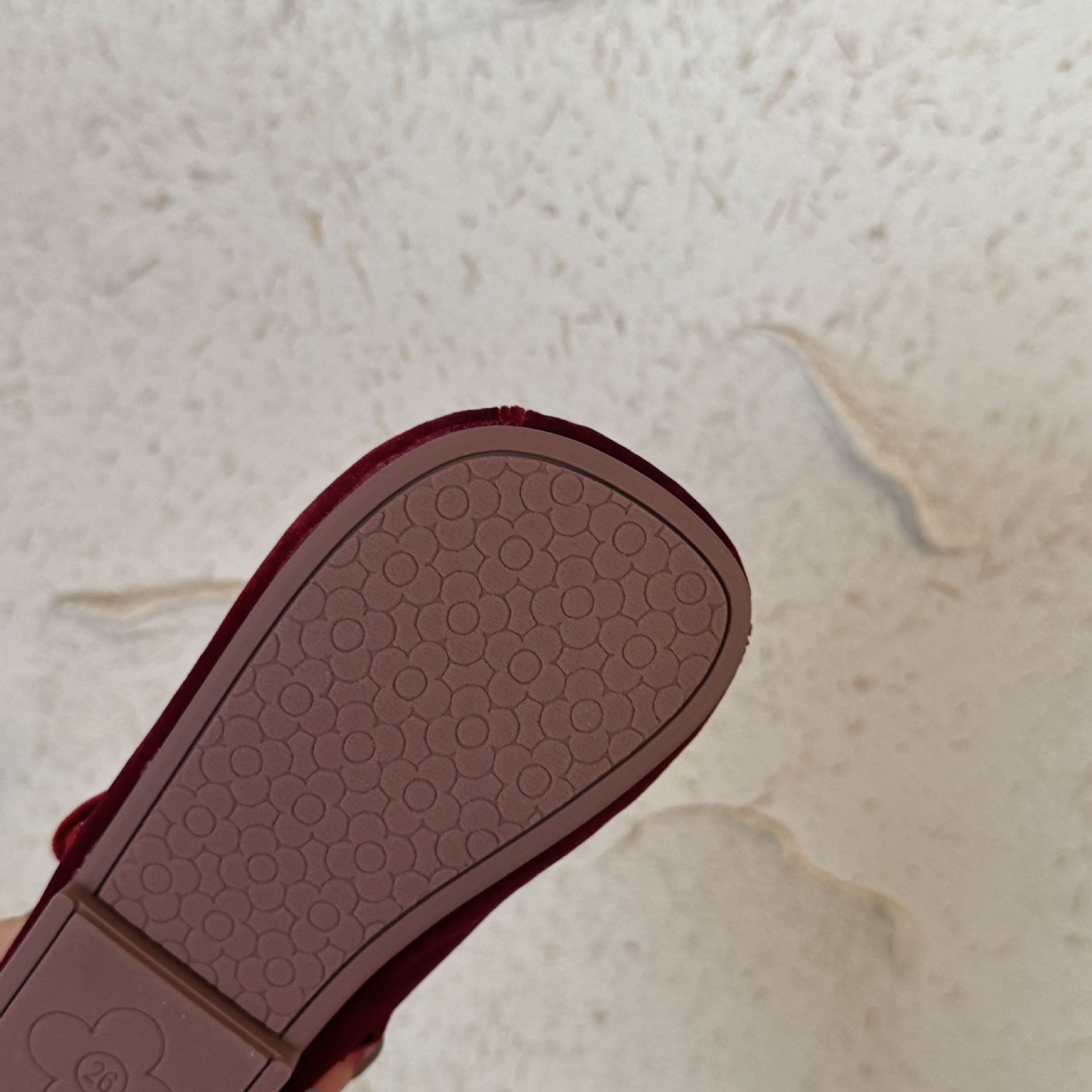 女童皮鞋2025秋季新款儿童时尚百搭公主鞋小女孩红色丝绒面平底鞋