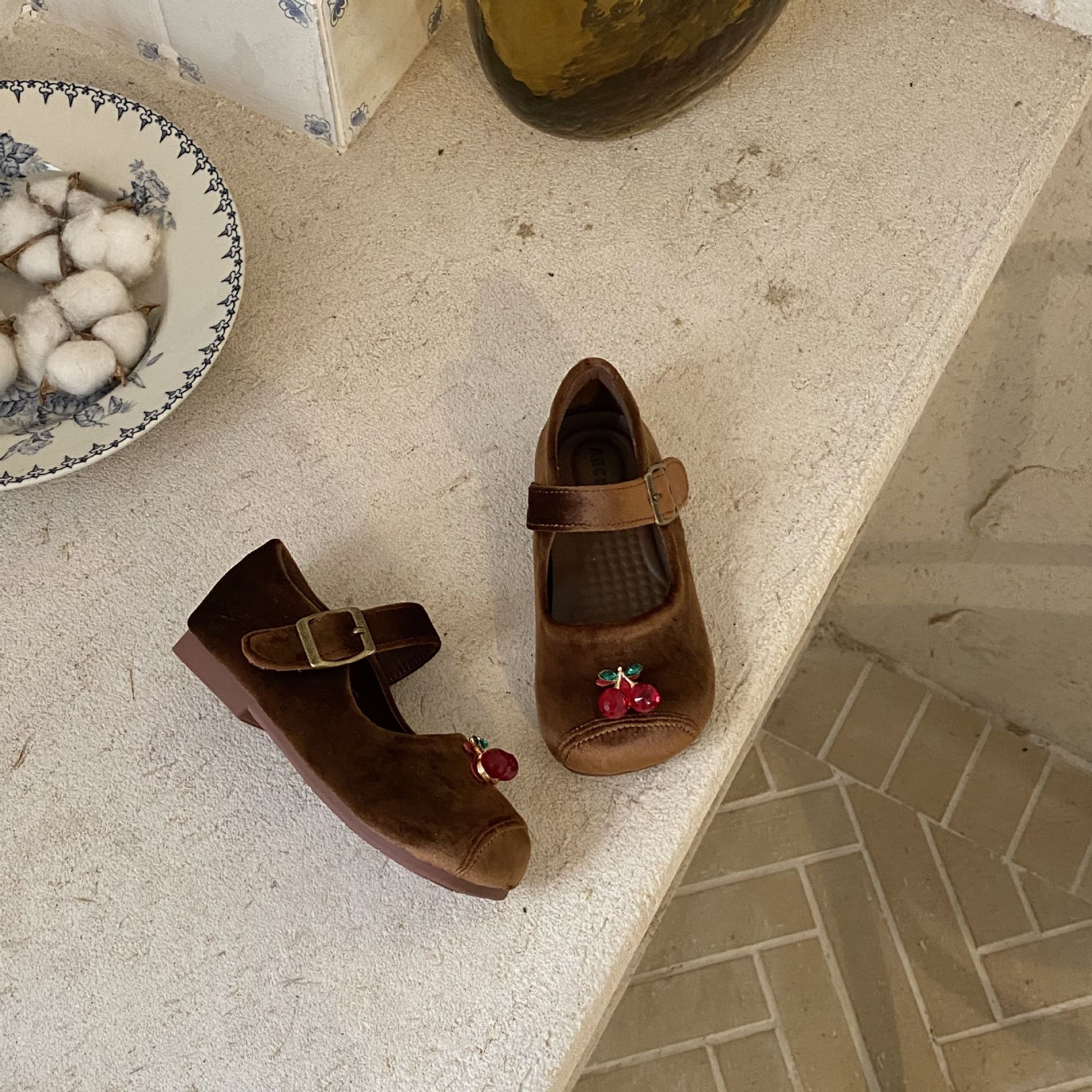 女童小皮鞋2025秋冬新款儿童卡通水果公主鞋小女孩复古绒面软底鞋