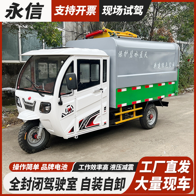 厂家批发电动三轮液压尾板车小区工厂学校垃圾清运车新能源保洁车