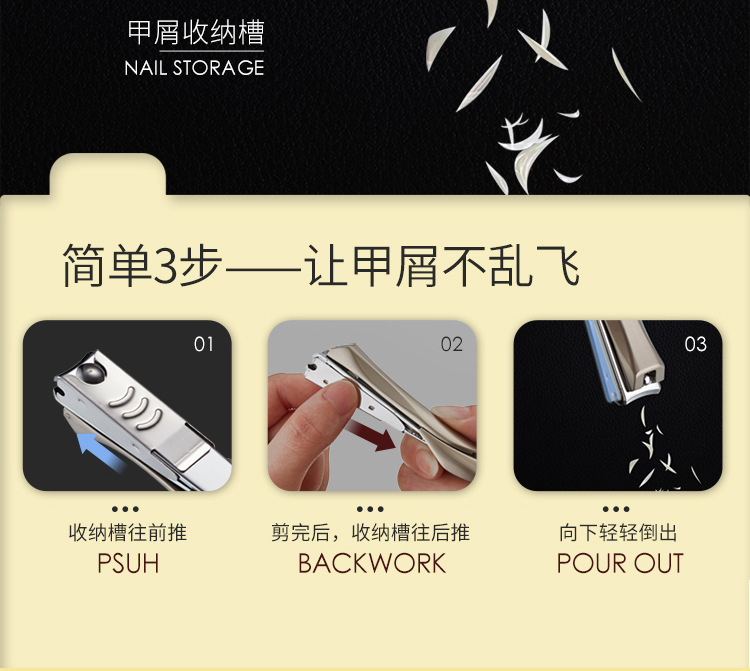 螳螂防飞溅指甲刀单个指甲剪套装大小号指甲钳美甲工具一件代发