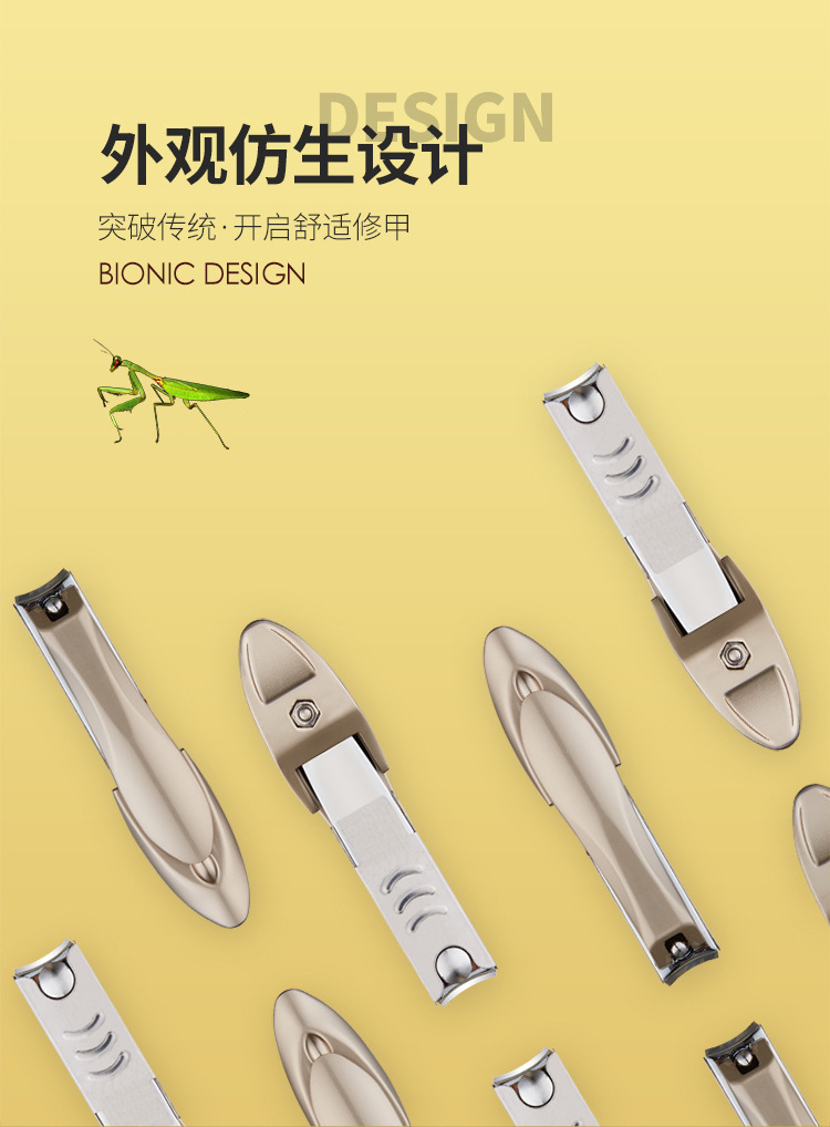 飛散防止カマキリ爪切りセットシャンパン色爪切り修理甲大型家庭用ステンレス爪切り卸売り