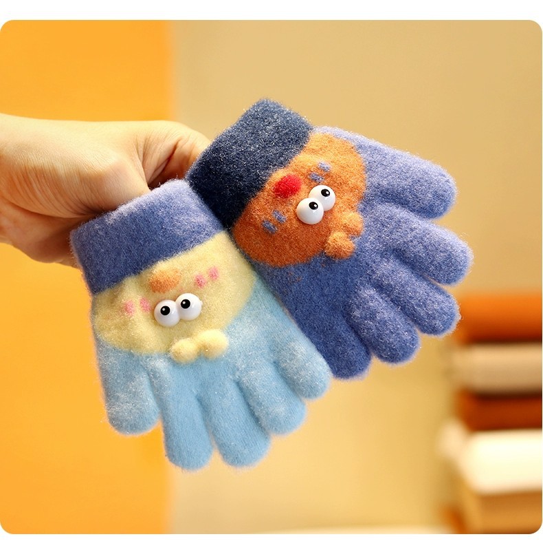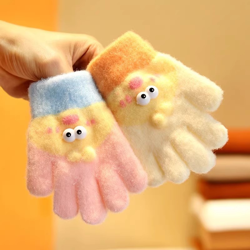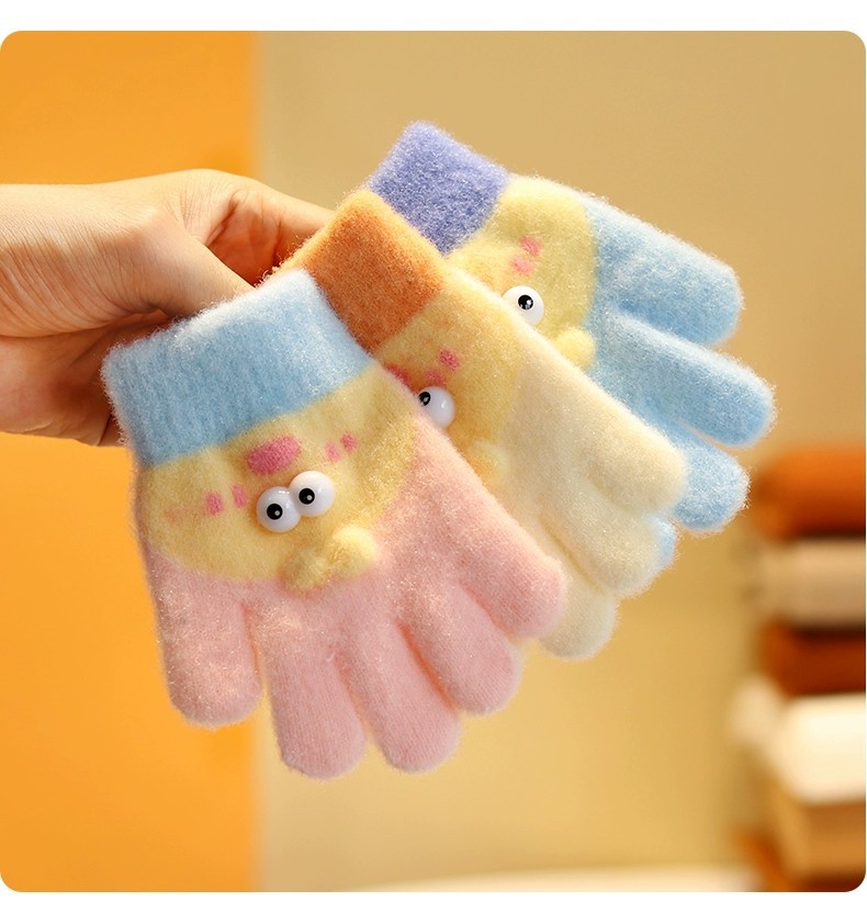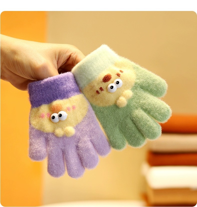 子供用手袋冬かわいい漫画ニット毛糸男女子供5本指子供保温防寒3-8歳
