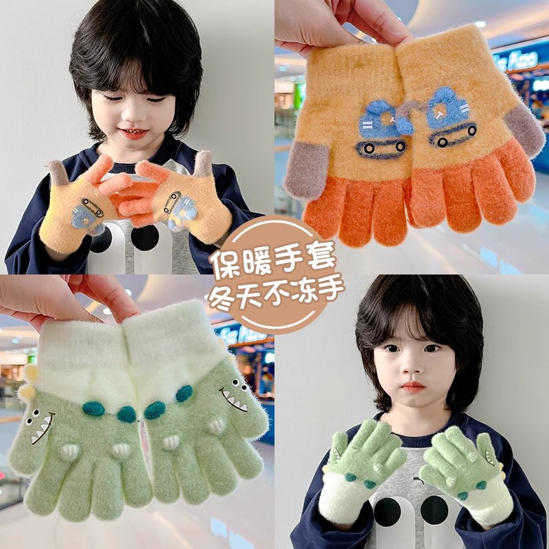 小さな恐竜の子供の手袋冬の保温3歳4歳5歳の男の子の女の子の赤ちゃんは5本の指の手袋を指します