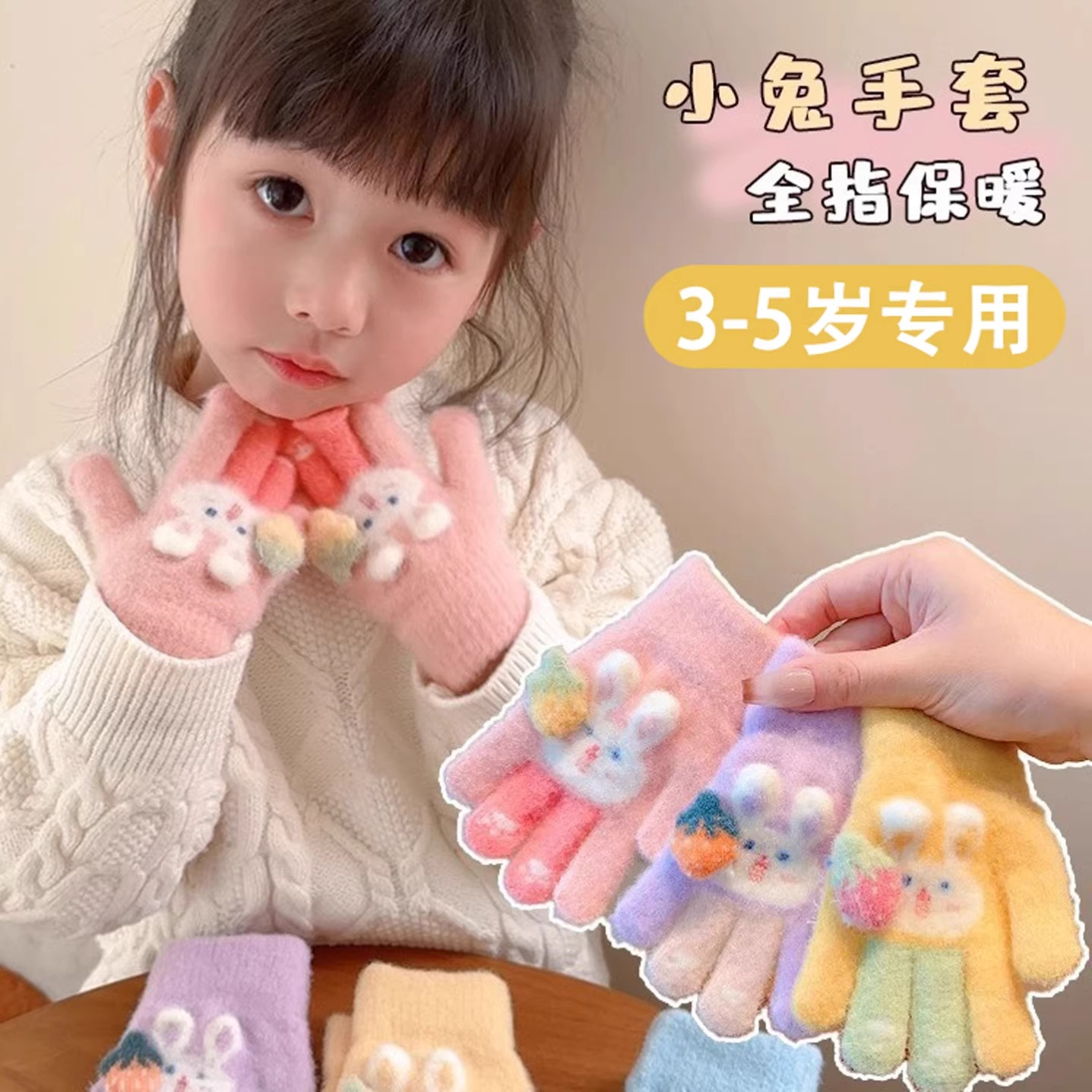 卡比巴拉儿童手套女孩五指冬天保暖宝宝小学生上学专用男童防寒冻