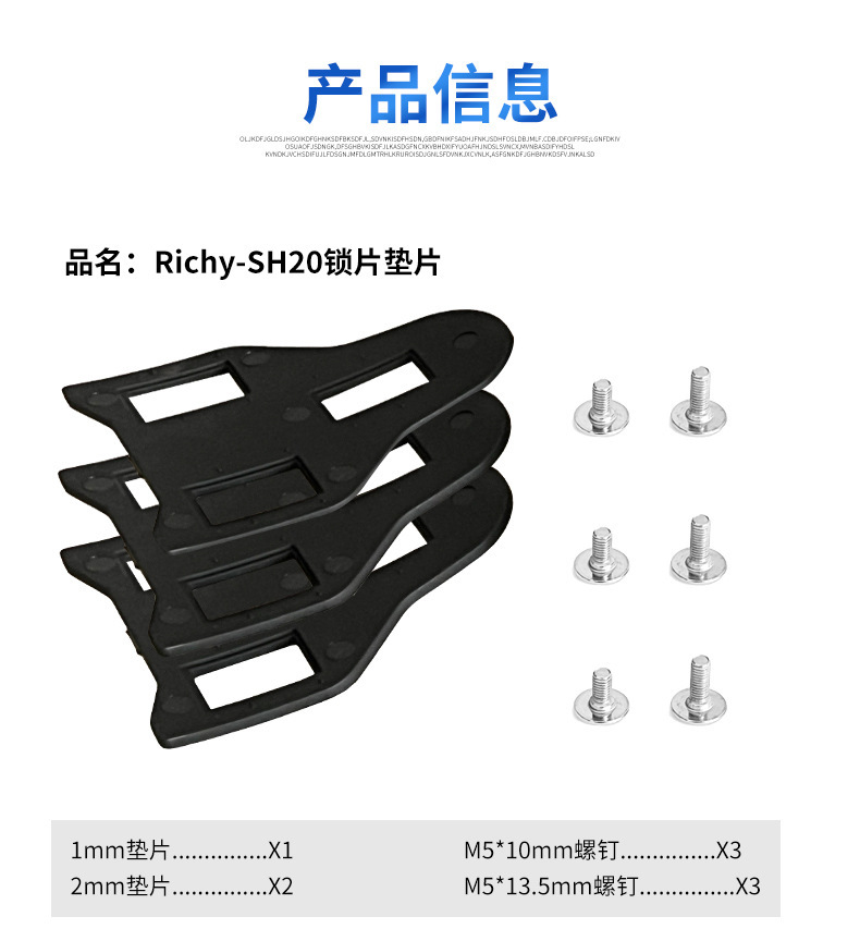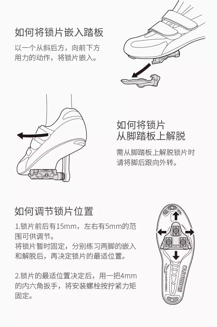 颜色 蓝色锁片 2角度1对(适用于Shimano锁踏),红色锁片 0角度1对(适用于Shimano锁踏),黄色锁片 6度1对(适用于Shimano锁踏),公路适用shimano锁片增高调片(*3片)