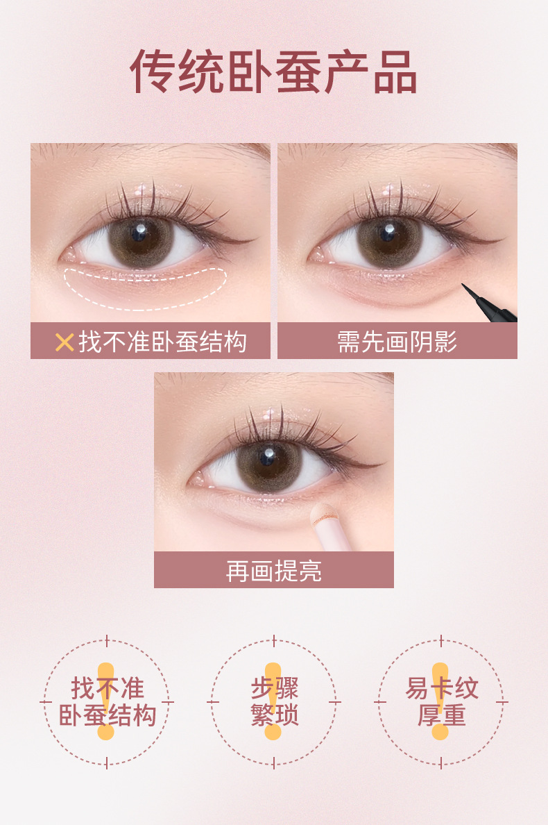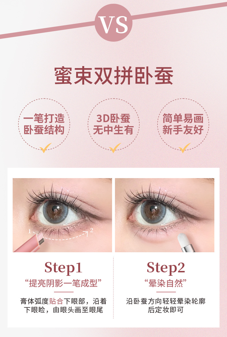 蜜束弯月卧蚕笔眼影双头两用眼睑下至阴影二合一勾勒粉色提亮卧蚕