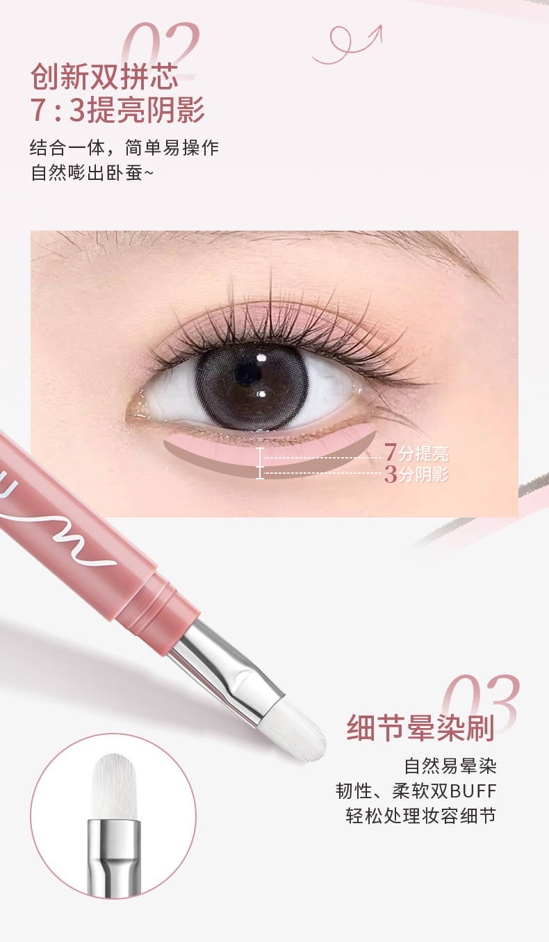 蜜束双拼卧蚕笔提亮阴影勾勒二合一自带晕染刷妈生感立体卧蚕平价