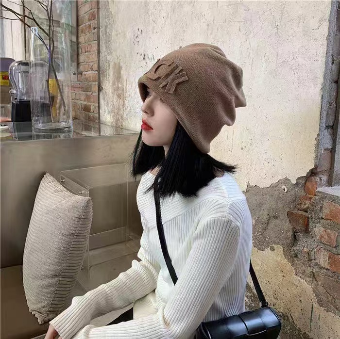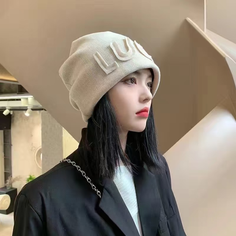 ins小众个性字母毛线帽韩国秋冬冷帽保暖护耳瓜皮帽街头针织帽潮
