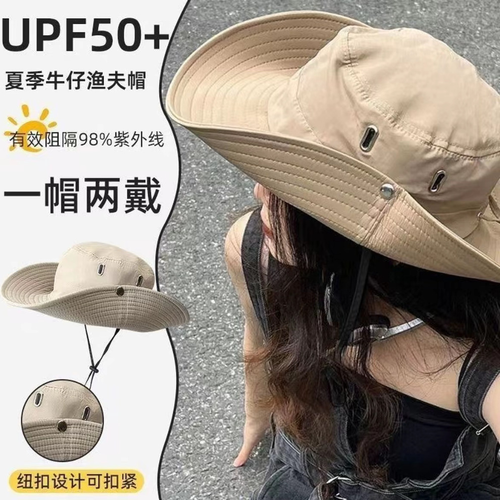 旅行の大きなつばのひもの漁師の帽子の子供の夏の屋外の登山の釣りの日焼け止めの帽子の日よけの西部のカウボーイの帽子