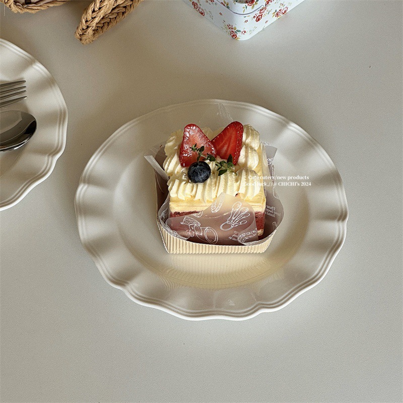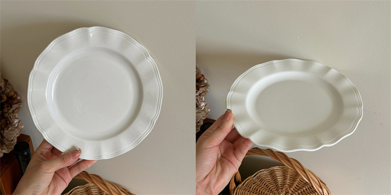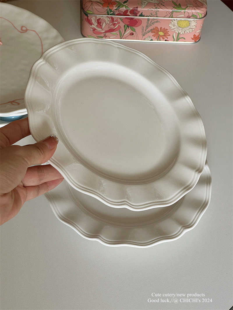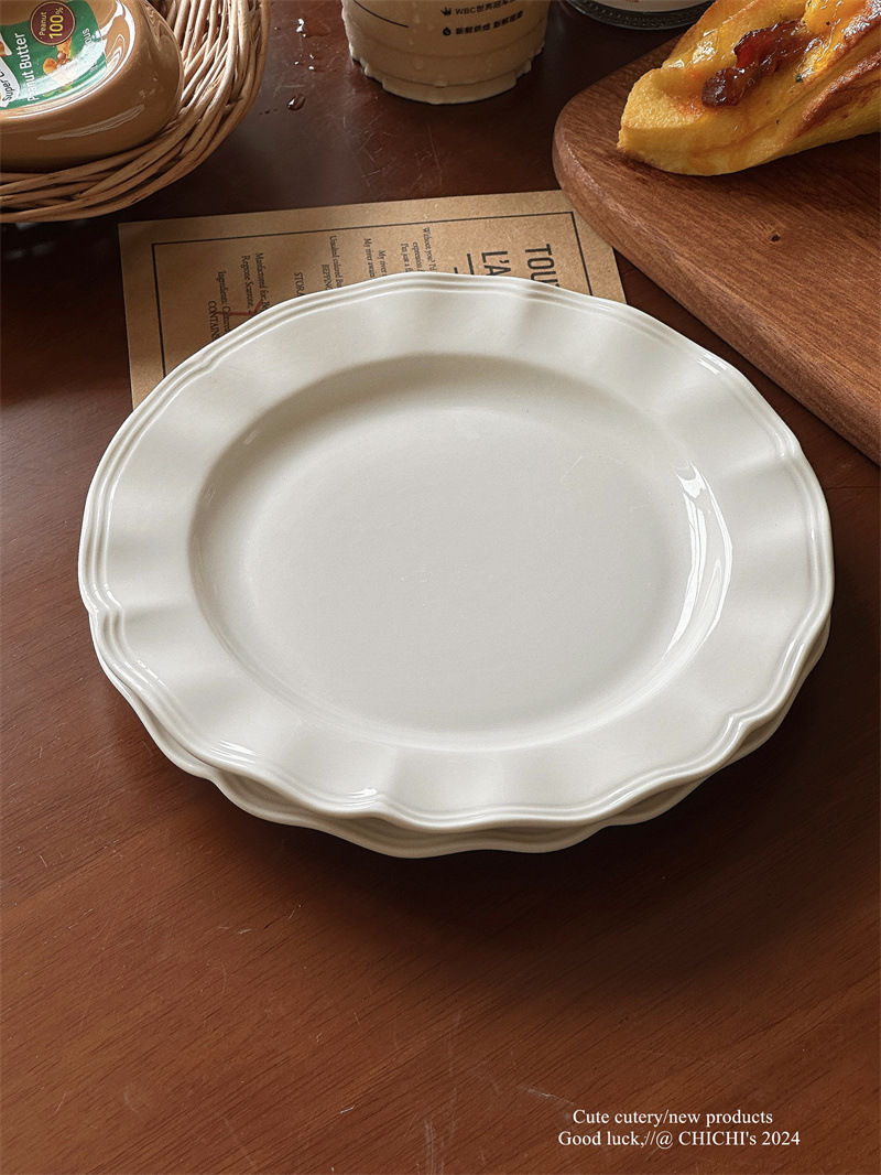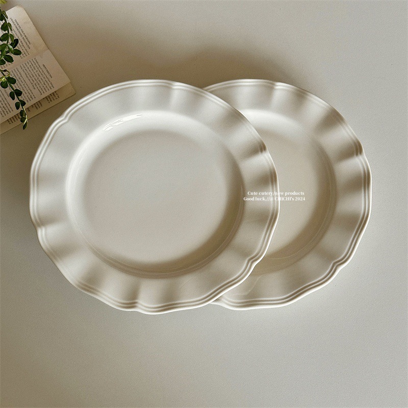インスタ風レトロレリーフラインレースプレート純白セラミックプレートフレンチレリーフサイド洋食プレートデザート朝食皿