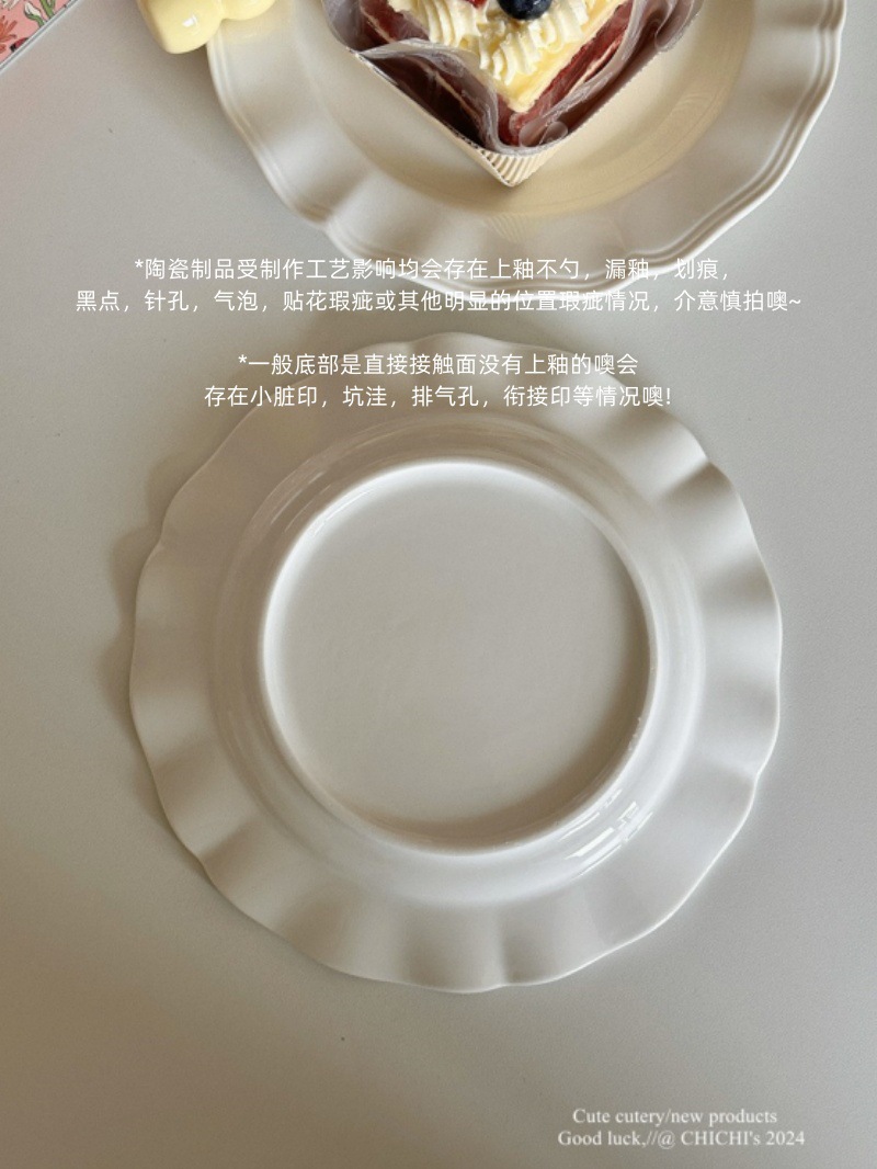 法式中古经典白色褶边陶瓷餐盘下午茶甜品点心水果碟商用家用圆盘