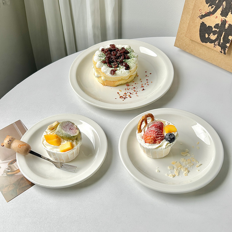 韓国インスタ風皿純白シンプル朝食皿セラミックネット赤家庭用高級感デザート皿ケーキ皿