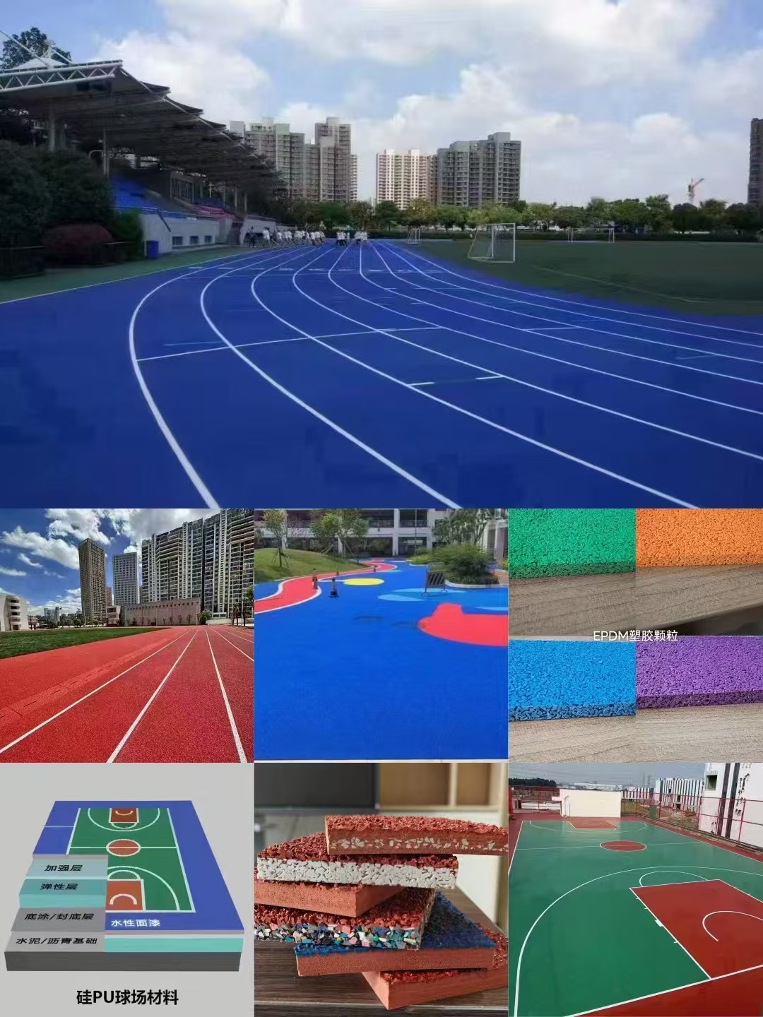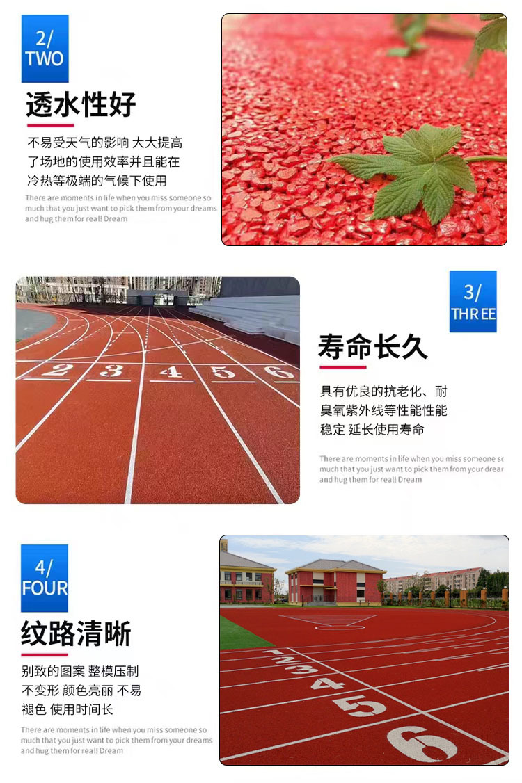 epdm橡胶颗粒塑胶跑道材料透气型塑胶跑道室外地胶epdm橡胶颗粒