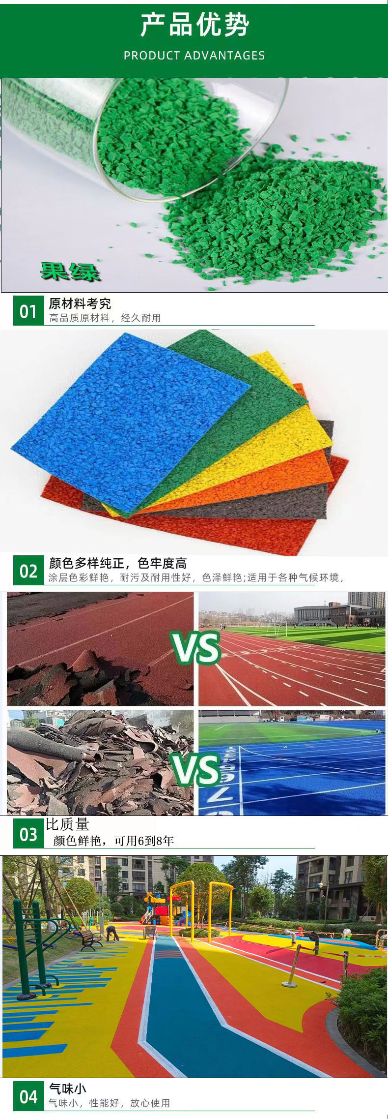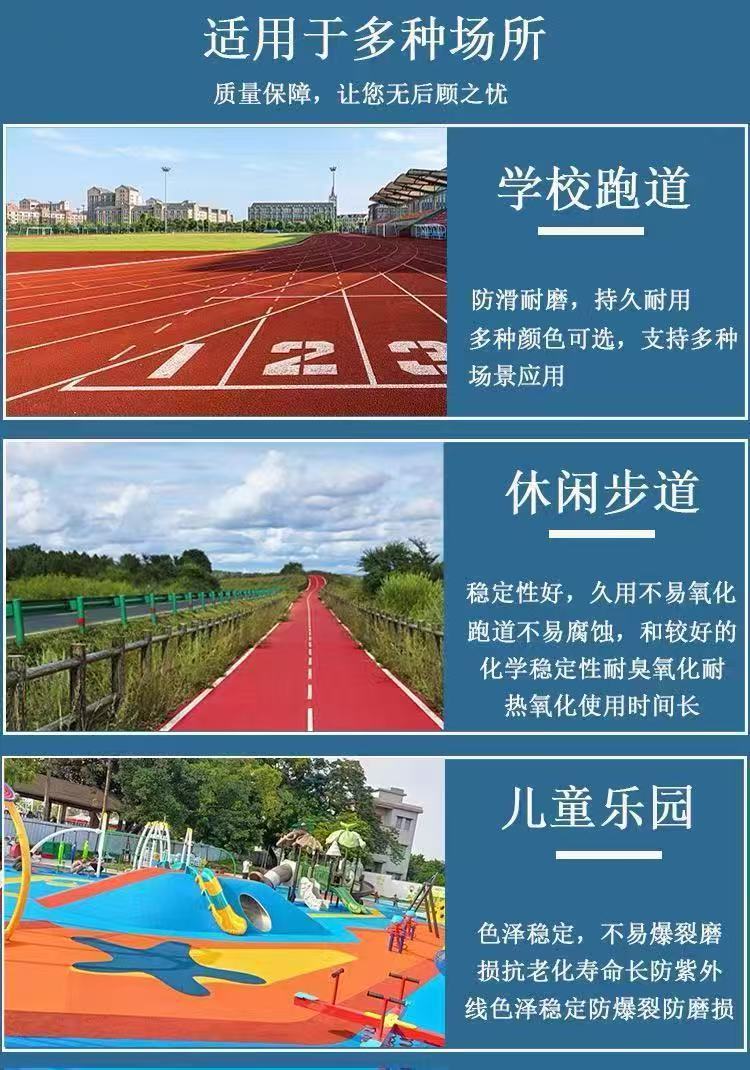 厂家EPDM橡胶颗粒塑胶跑道材料幼儿园户外公园塑胶地坪跑道材料