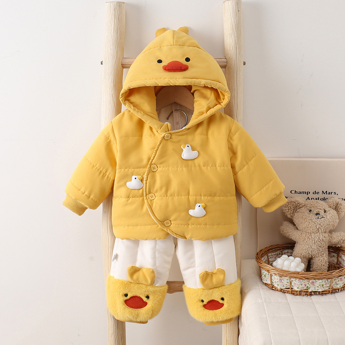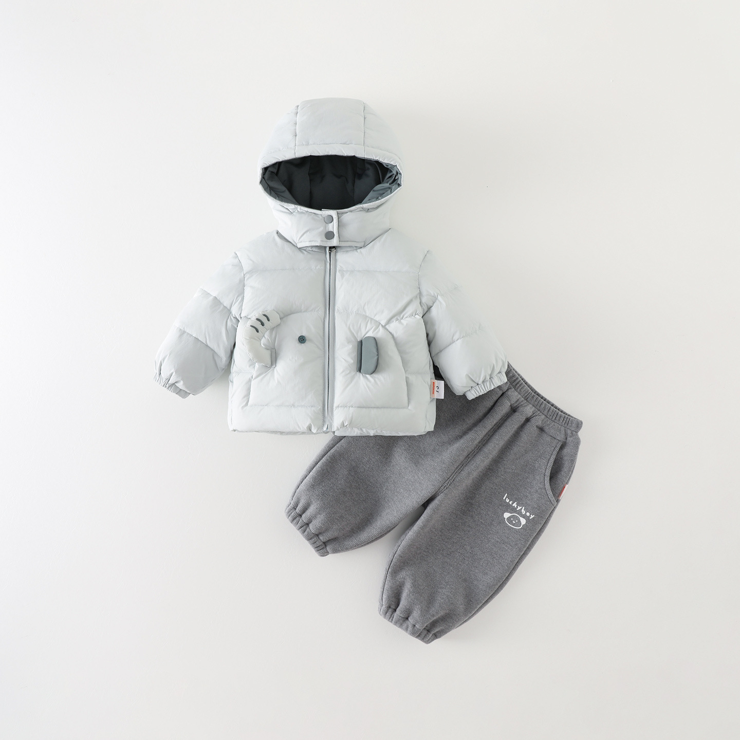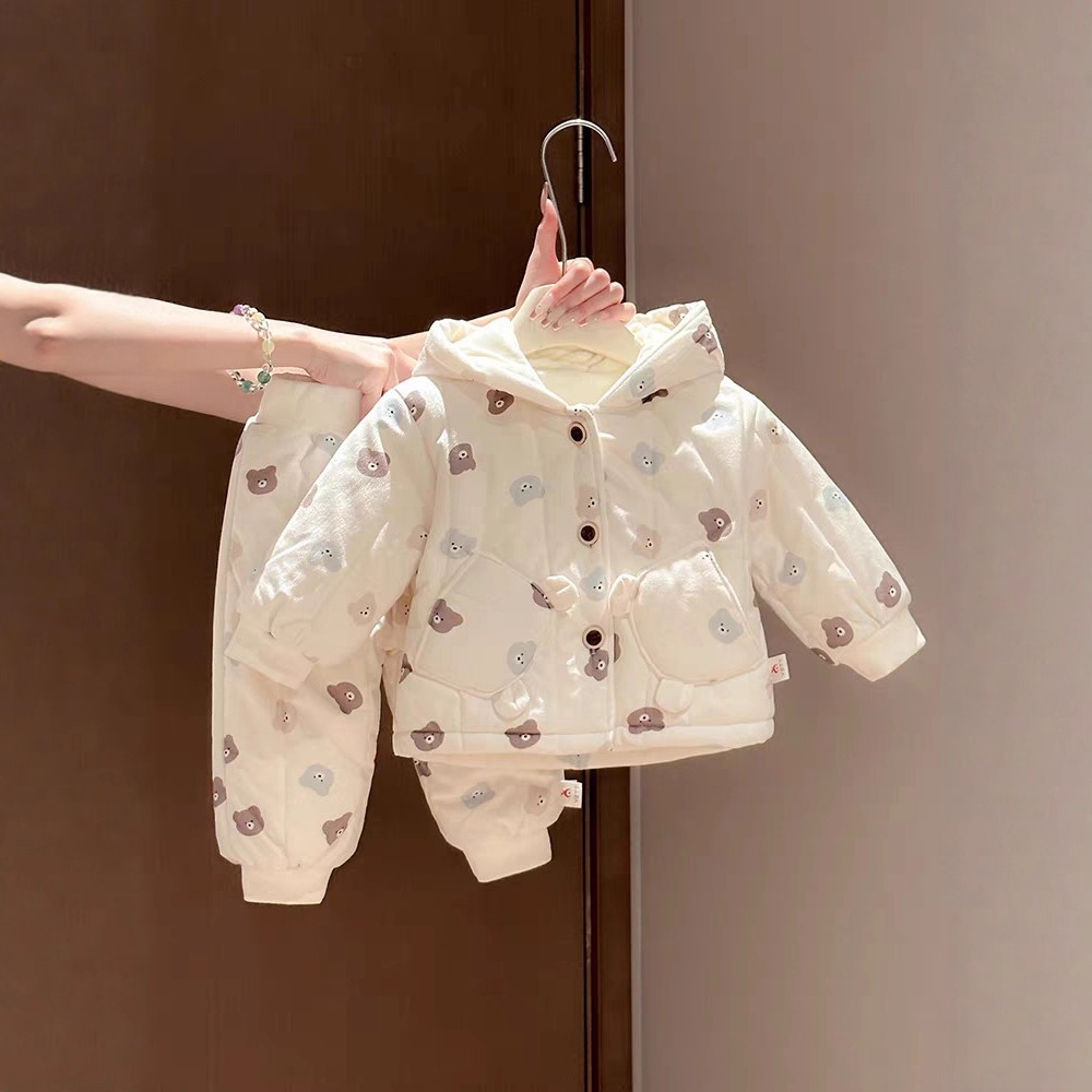 婴幼儿冬季加厚加绒保暖棉服宝宝连帽棉衣棉裤两件套百搭外出服冬
