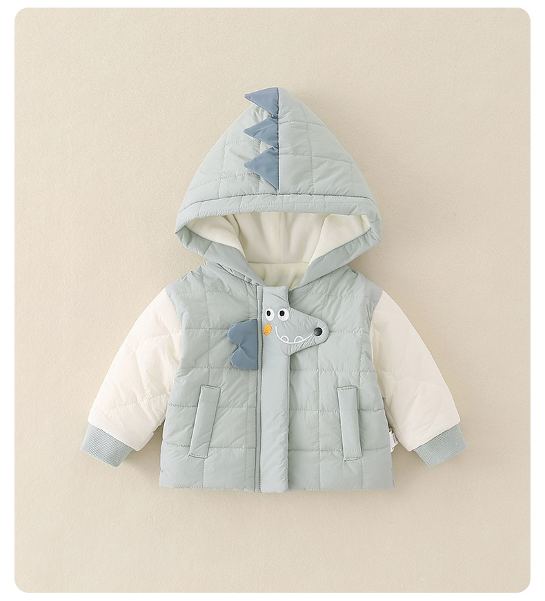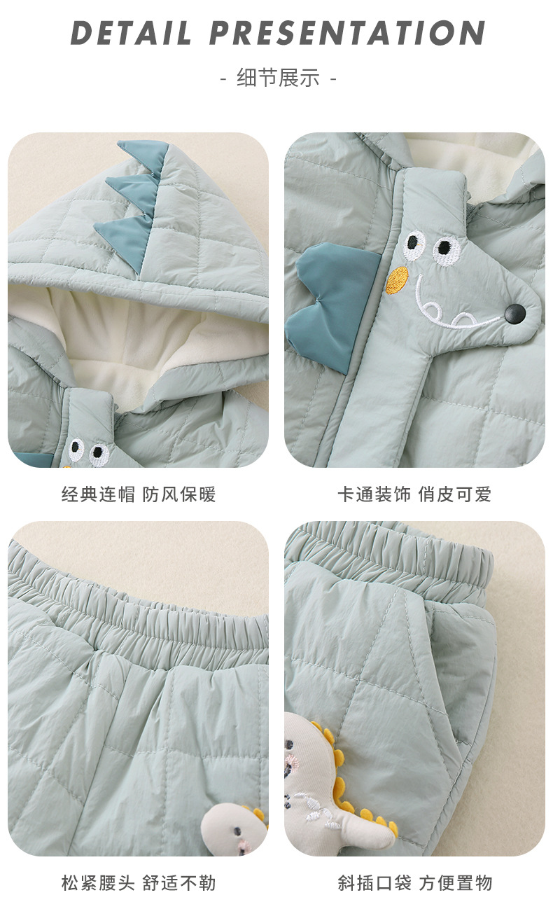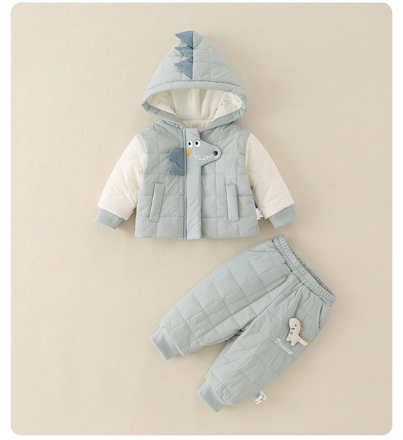 2025年冬季夹棉衣服两件套一岁男宝宝卡通保暖薄棉棉服分体套装