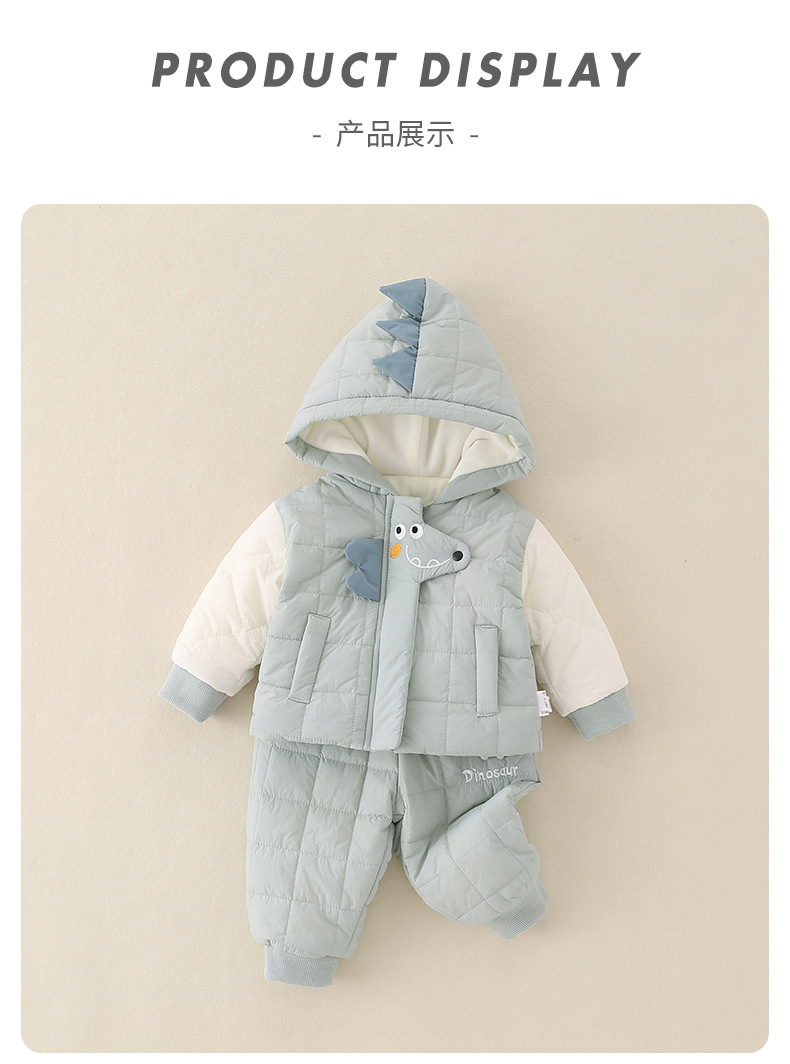 婴儿衣服冬装男宝宝秋冬季夹棉加绒分体两件套装冬款保暖帅气衣服