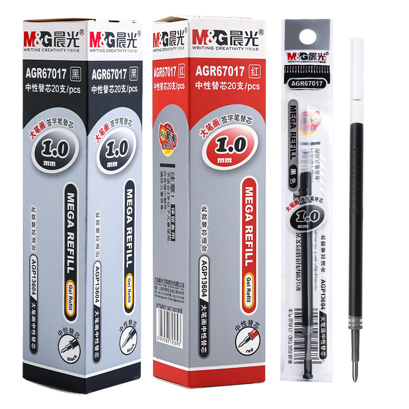 晨光中性笔芯1.0mm子弹头黑色大容量学生办公加粗大笔画替芯67017
