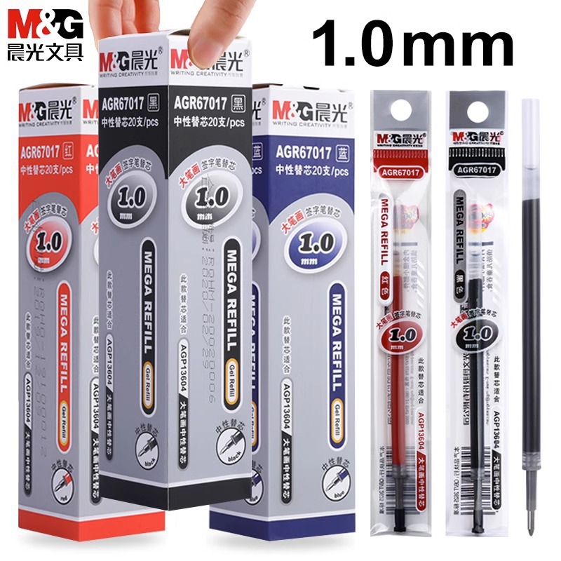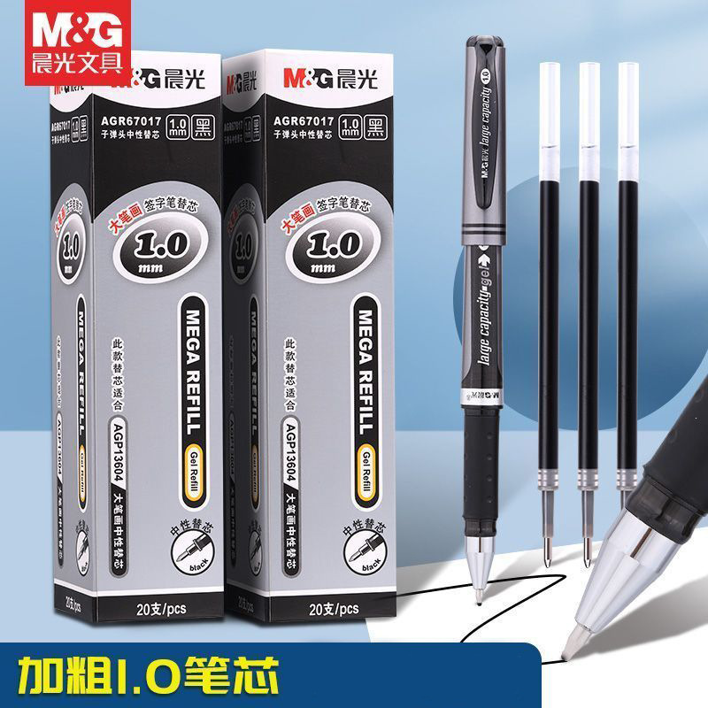 晨光中性替芯大笔画1.0mm黑色大容量签字笔芯子弹头加粗AGR67017