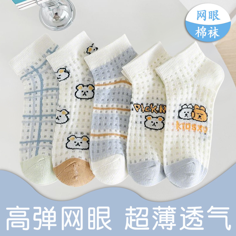 子供靴下学生春と夏のメッシュ通気性超薄型女の子男の子ミッドチューブ中型子供ベビー漫画綿の靴下