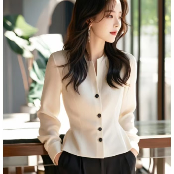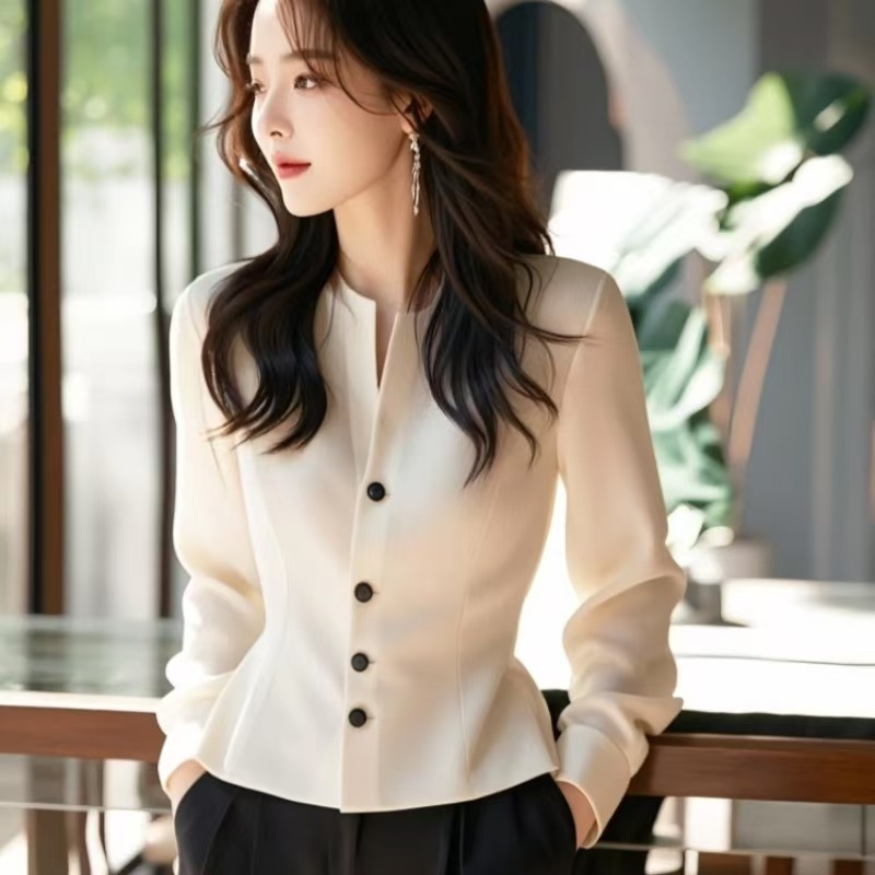 早秋新款高端小香风掐腰上衣法式轻奢高级感气质名媛绝美白色衬衫