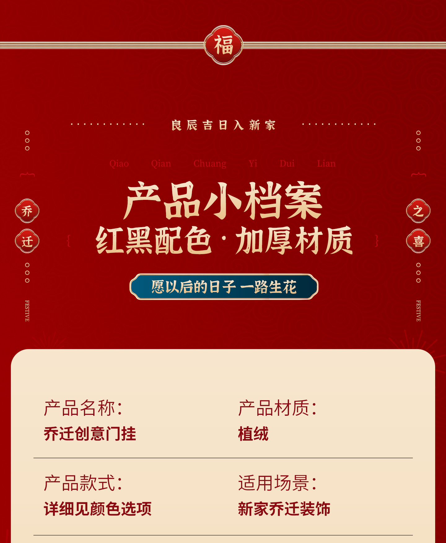 颜色 【乔迁之喜】绒布门把手挂件,【进宅大吉】绒布门把手挂件,【乔迁大吉】绒布门把手挂件,【开门见喜】绒布门把手挂件,【暖居如意】绒布门把手挂件,【喜迁新居】绒布门把手挂件,【平安喜乐】绒布门把手挂件,【日日好日】绒布门把手挂件,【大吉大利】绒布门把手挂件,【一门瑞气】绒布门把手挂件,【招财进宝】绒布门把手挂件,【安居乐业】绒布门把手挂件,【吉庆人家】绒布门把手挂件,【八方来财】绒布门把手挂件,【福旺人旺】绒布门把手挂件,【人顺家旺】绒布门把手挂件,【五福临门】绒布门把手挂件
