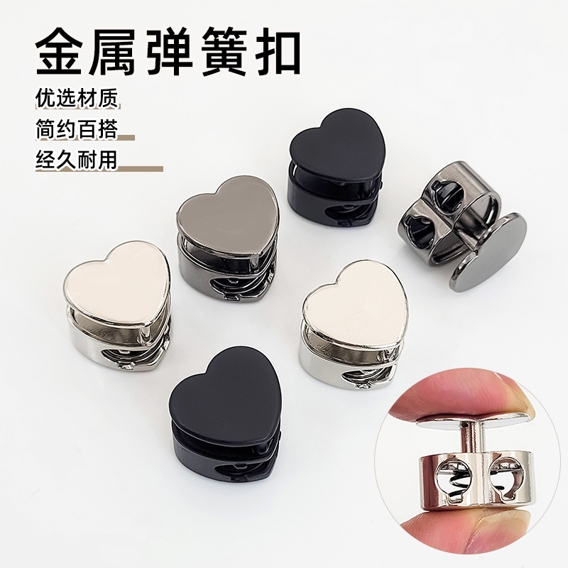 ハート型金属スプリングバックル、二穴豚鼻地雷バックル、衣類巾着調整ストップバックル、ズボン裾締めロープバックル
