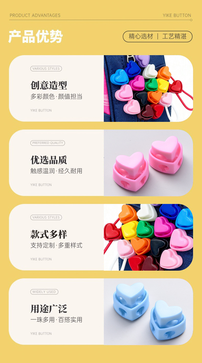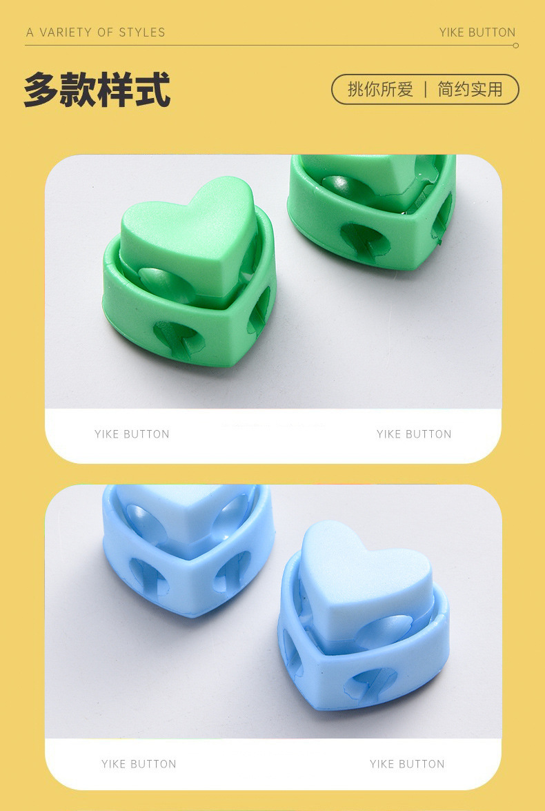 批发爱心弹簧彩色纽扣 外套心形装饰猪鼻扣 外套裤脚抽绳扣