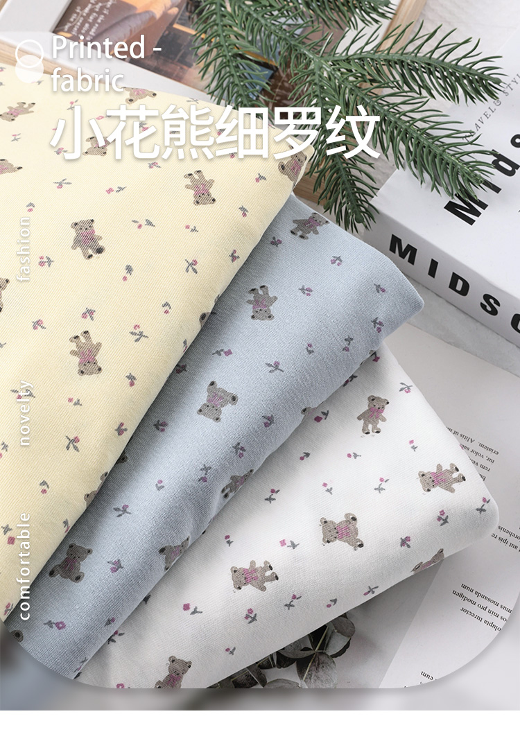 印花罗纹针织布料柔软弹力宝宝打底衫童装家居服diy精面料