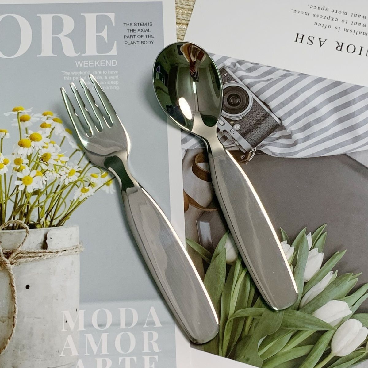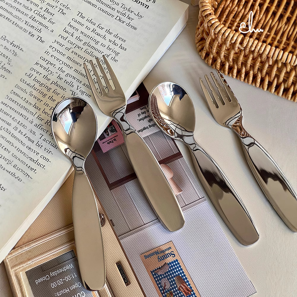 304ステンレス子供スプーンフォーク家庭用かわいい食器赤ちゃん食事スプーンクリエイティブデザートスプーンフォーク