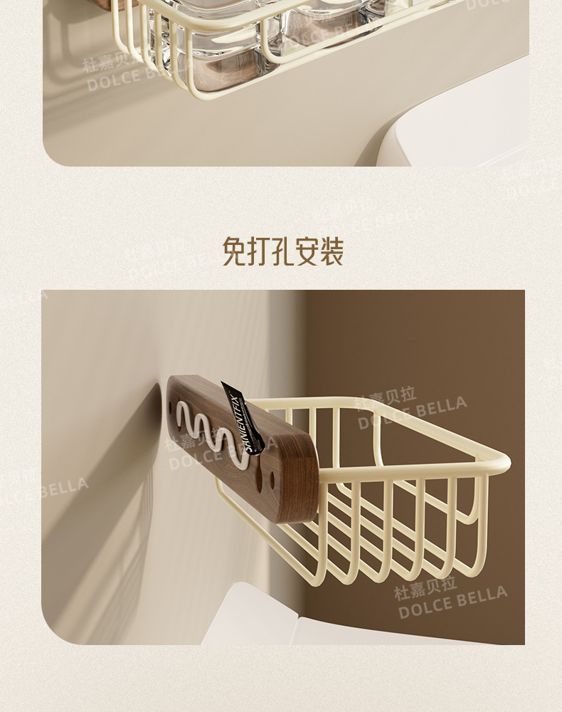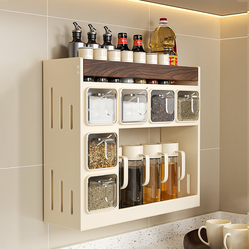 クルミキッチン収納ラック クリームスタイル 壁掛け 穴なし調味料調味料多機能収納ラック