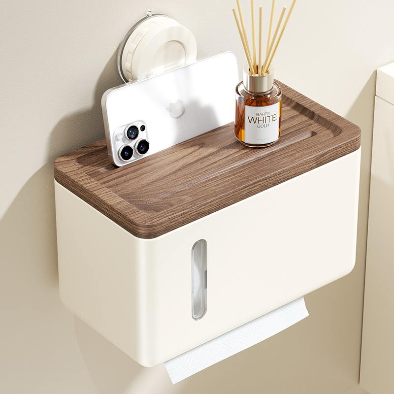 胡桃木吸盤防水ティッシュケース壁掛け式穴なしトイレトイレトイレットペーパーホルダー